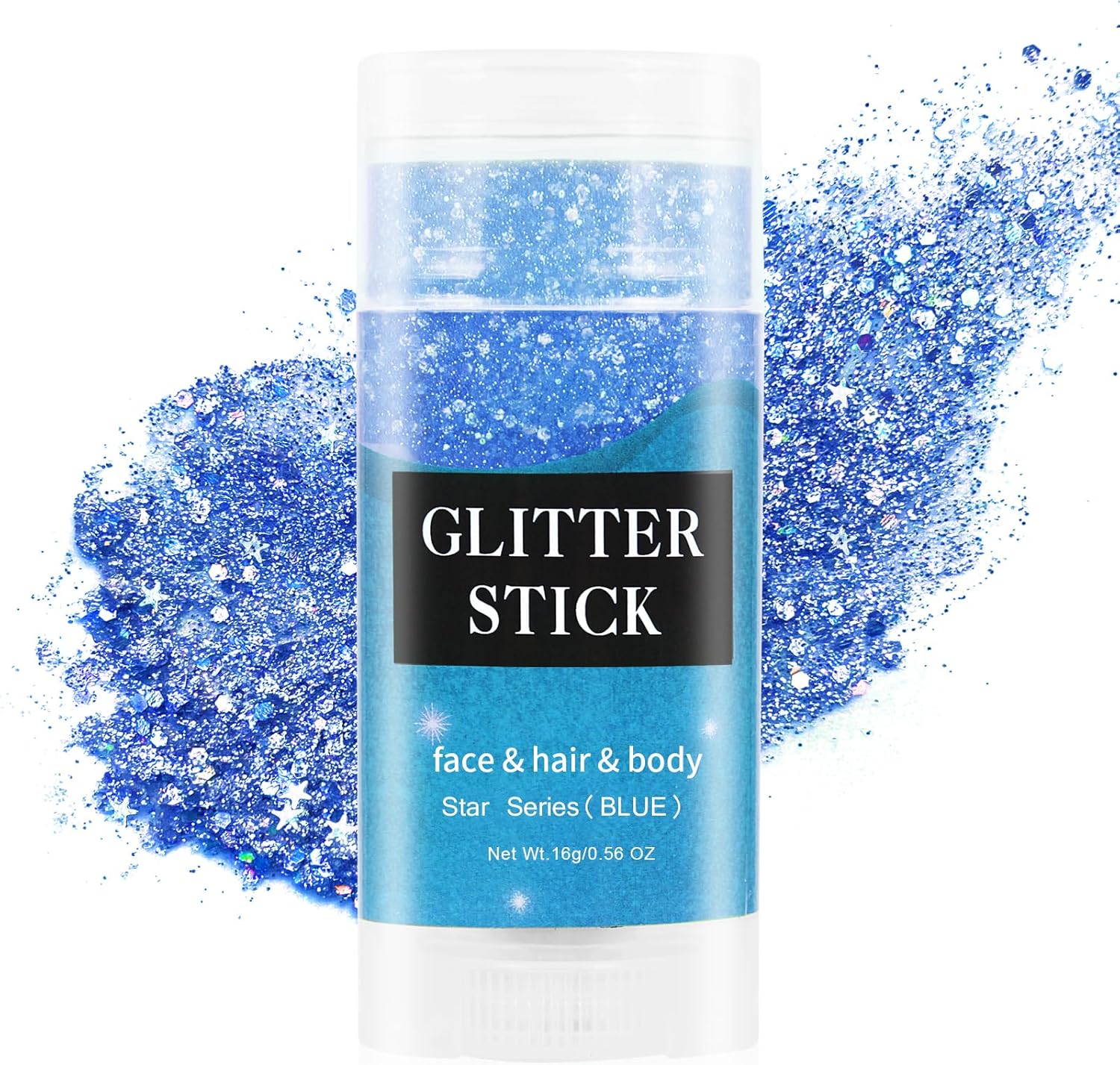 MEICOLY Blue Face Body Glitter Stick,Blue Hair Face Glitter Makeup,Mermaid Chunky Glitter Face Paint,Waterproof Sparkle Festival Rave Accessories for Women