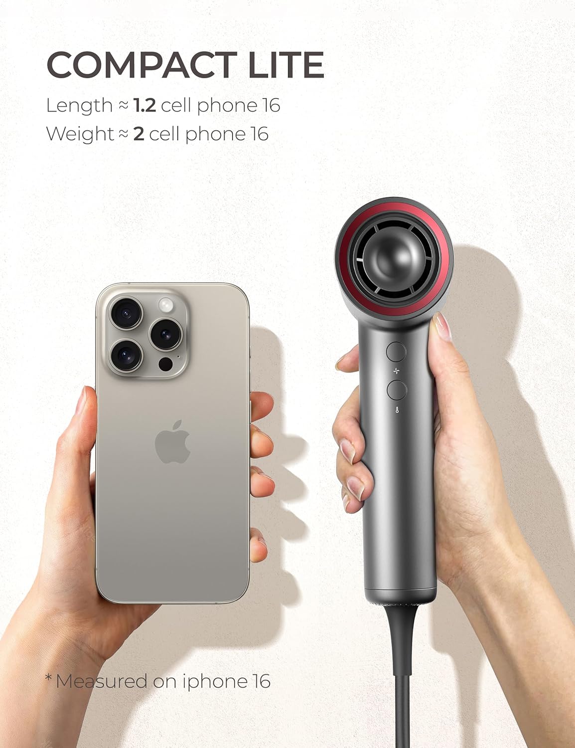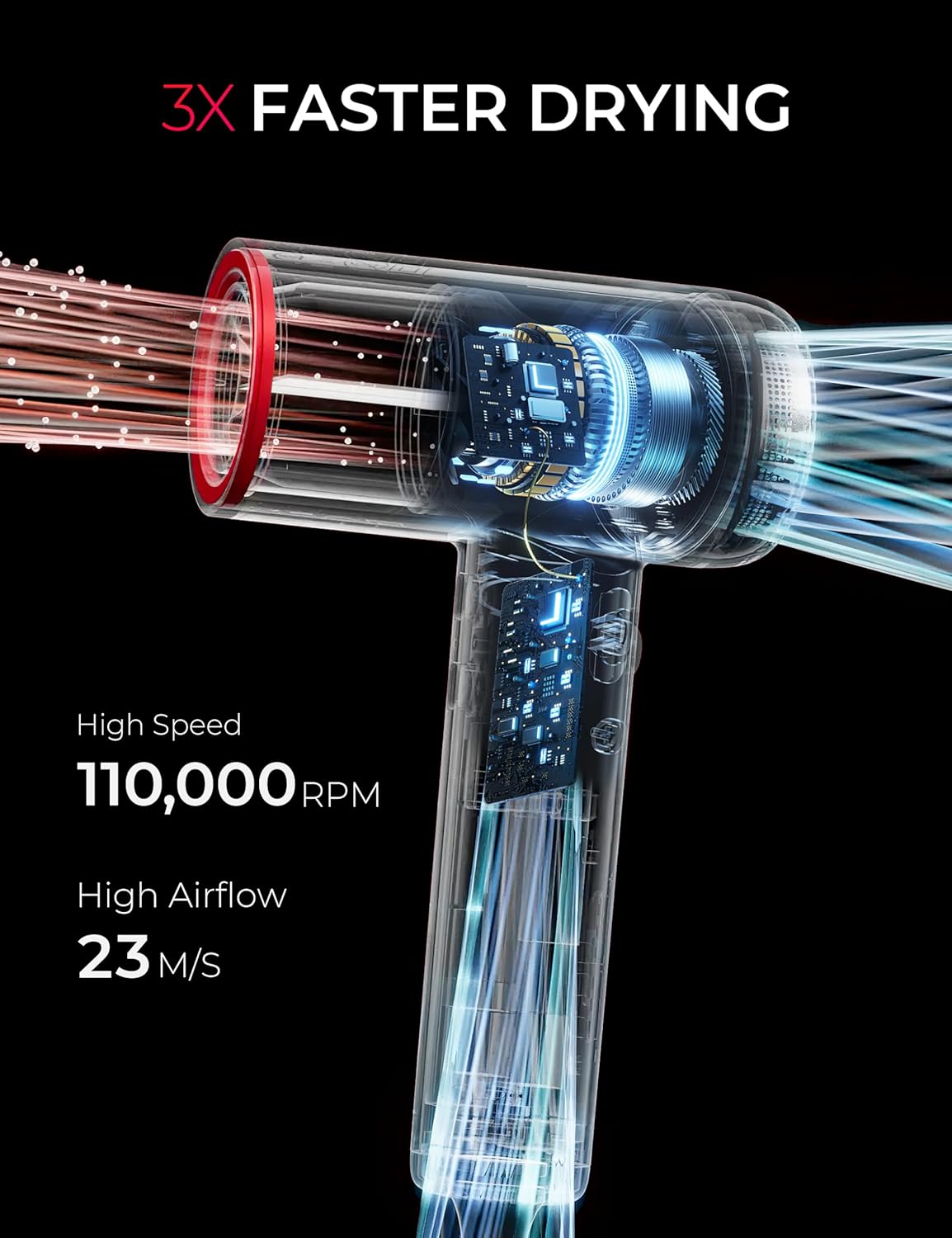 - Powerful Faster Drying: TYMO AIRHYPE Lite Hair Dryer, equipped with 110,000 RPM brushless high-speed motor combined with optimized high-volume airflow, it offers 2X faster drying results than regular dryers.