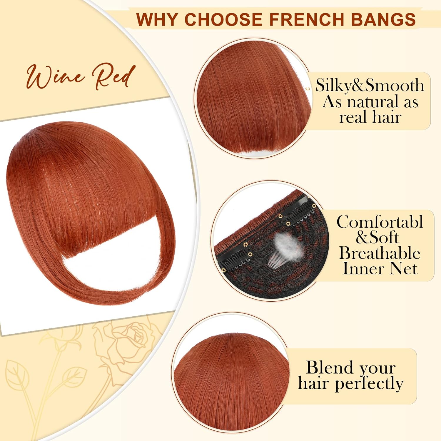 - High Quality Clip-in Bangs: Synthesis hair clip in bangs,shiny,soft and fluffy as your own hair.Creating the most lustrous and as realistic natural effects. Bangs hair clip-in Hair extensions can be curled, straightened or Trimmed into other styles as you like.