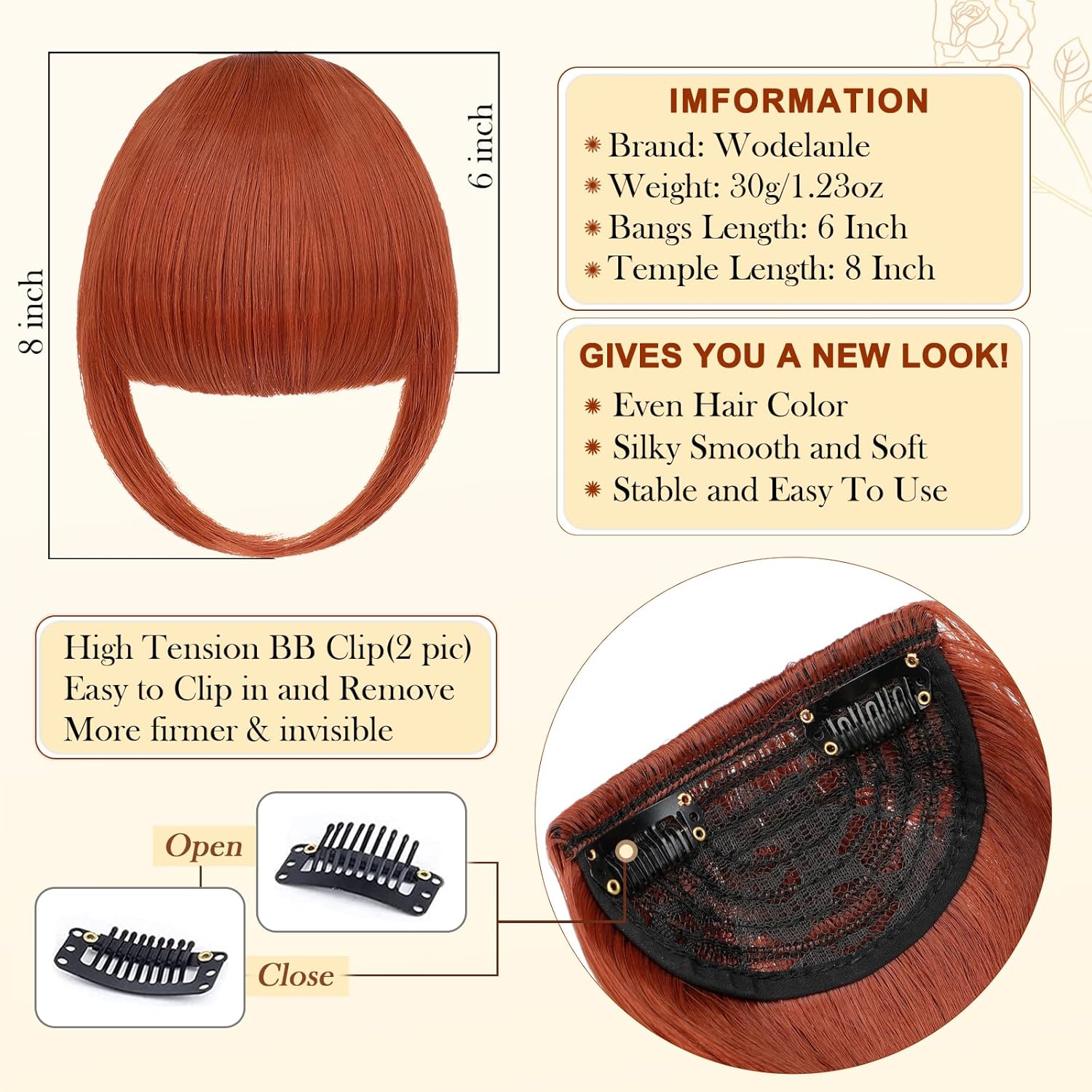 - Clip-in Bangs Design: Bangs Clip-in Hair Extensions.Clip-in design makes it easier to wear,change a new hairstyle in seconds,making you look more attractive.Two Clips are invisible and undetectable even on your thin front hairline.
