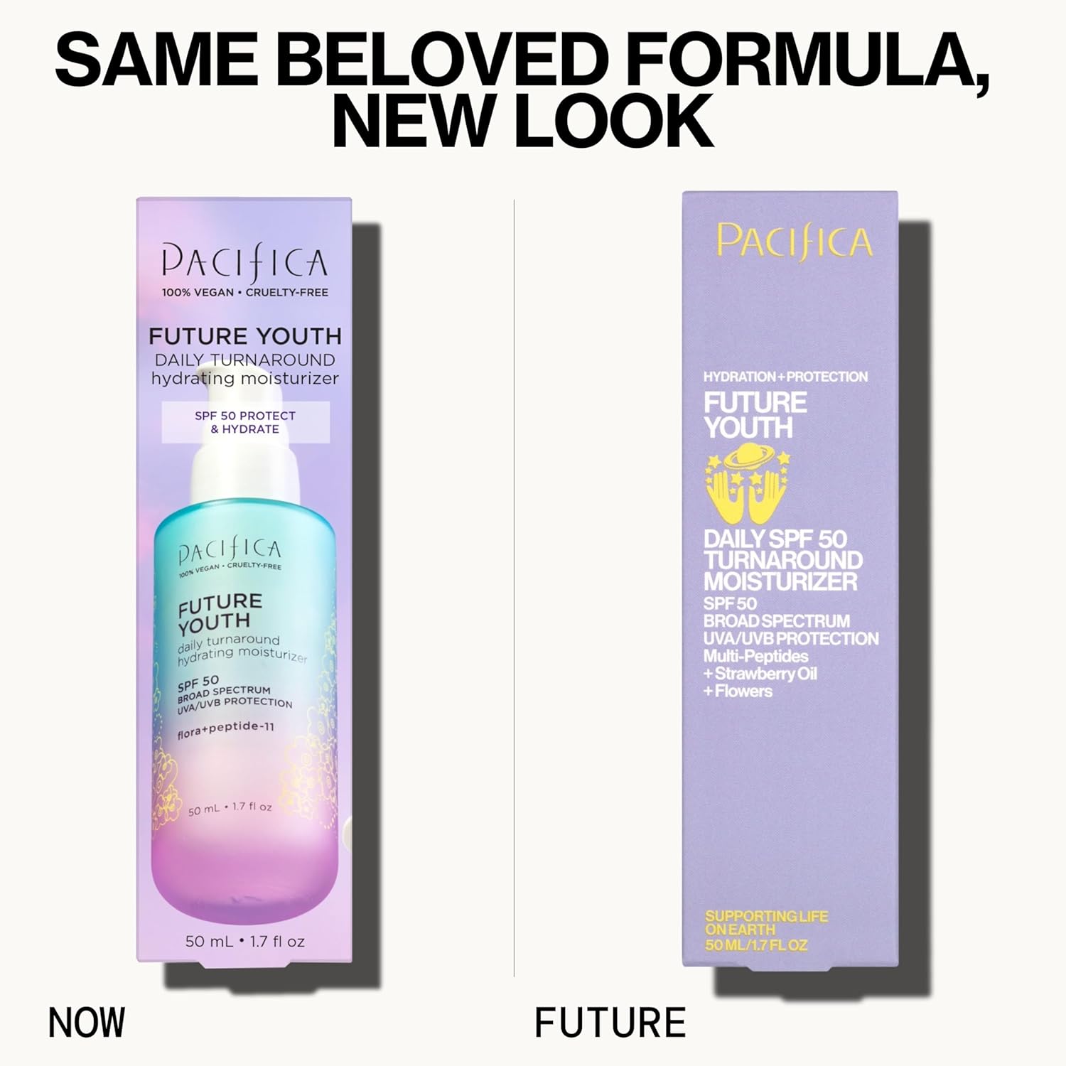 - SKINCARE FOR EVERY ST{AGE} Future proof your skin with Pacifica's most advanced formulations to address signs of aging. This Daily Turnaround Hydrating Moisturizer with broad spectrum UVA/UVB protection SPF 50 is your skin-vestment,