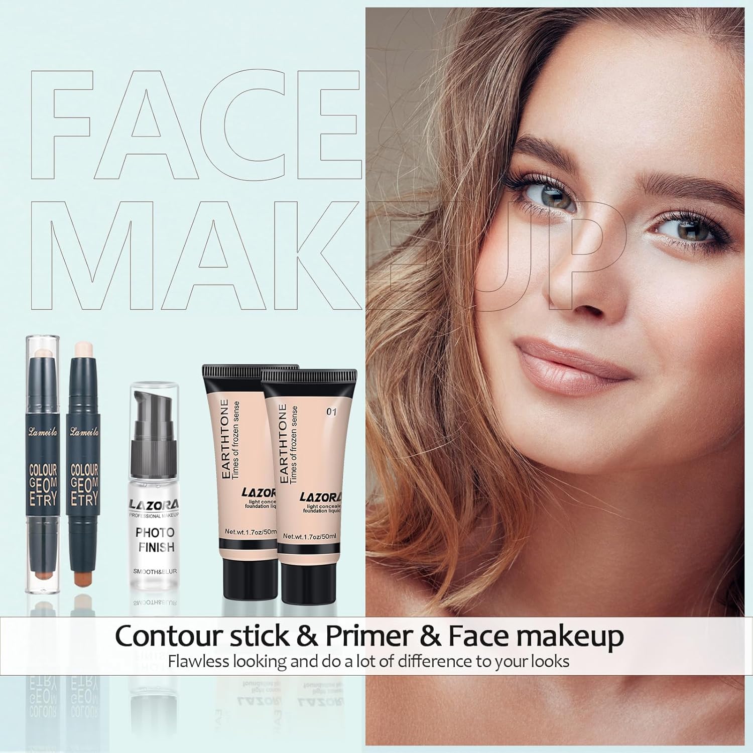 - All In One Makeup Kit】 Contains a wide variety of shades and styles, to let you find the look that suits you best. This cosmetics include 20Color Eyeshadow, Concealer, Liquid Foundation, Face Makeup, Lip Gloss, Lipsticks, Eyebrow Mascara Mascara,Eyeliner Foundation Makeup Brush, Powder Puff, Primer, Cosmetic Brush, Gift Box.The most sweetest present for your beloved. All women's essentials in one elegant box