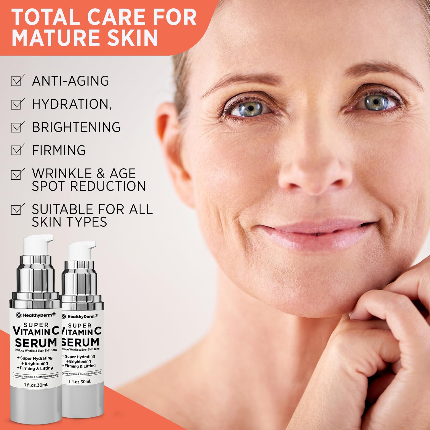 - Experience a brighter complexion with the brightening properties of this super vitamin c serum for women over 60, which helps to fade face dark spots and improve overall face skin tone for a more even and luminous look.
