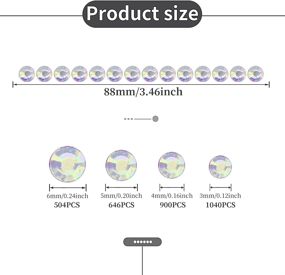 - 【Set Includes】Package contains 4 sheets of self-adhesive diamond stickers, including 1040pcs 3mm, and 900pcs 4mm, 646pcs 5mm, 504pcs 6mm. You will look more charming and gorgeous with these shimmering face body gems.