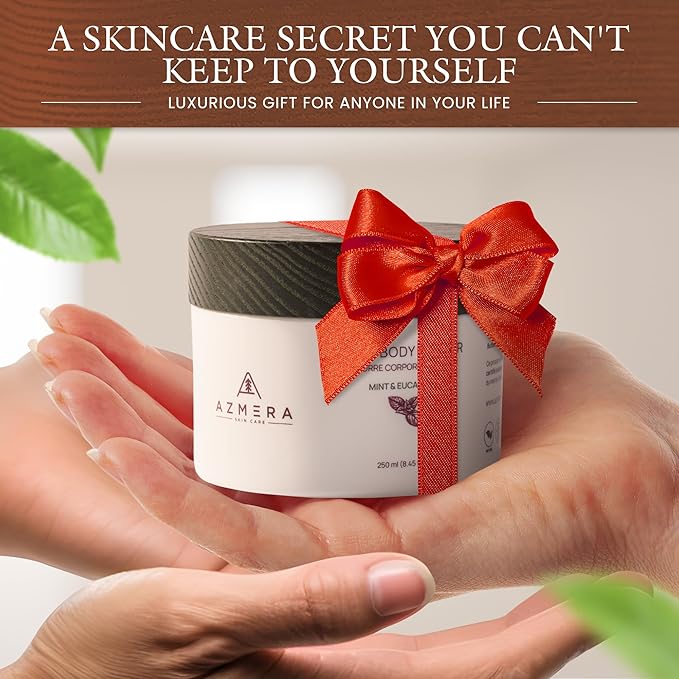 AZMERA Shea Body Butter - Organic Body Butter for Women & Men Dry Skin Rich in Antioxidants & Vitamin E - Vegan Shea Butter Moisturizer, Raw Shea Butter from Africa (Mint&Eucalyptus, 250ml)