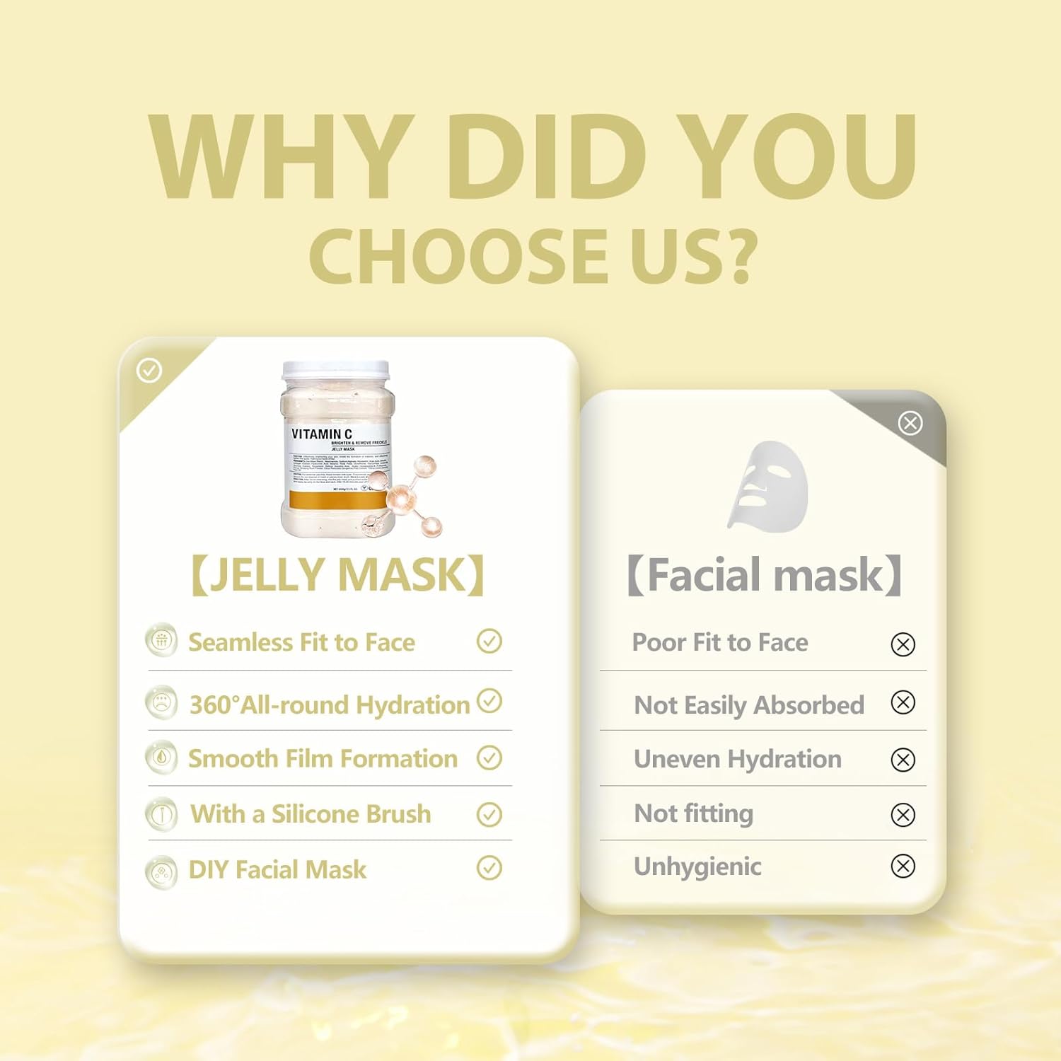 Jelly Mask for Facials, Hydrating & Moisturizing Peel-Off Rubber Gel Face Mask, Skin Care for Deep Hydration & Glow, 23 Fl Oz Jar, Professional Spa Use for All Skin Types with VC essence
