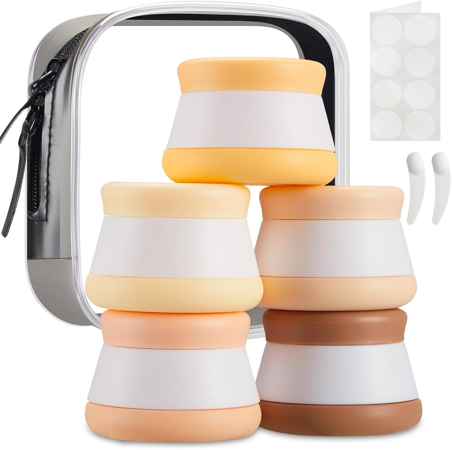 INSFIT Travel Containers for Toiletries, TSA Approved Silicone Cream Jars, Size Containers with Lids, 5PCS BPA Free Leakproof Travel Accessories for Liquid Lotion with Labels Mini Spatulas