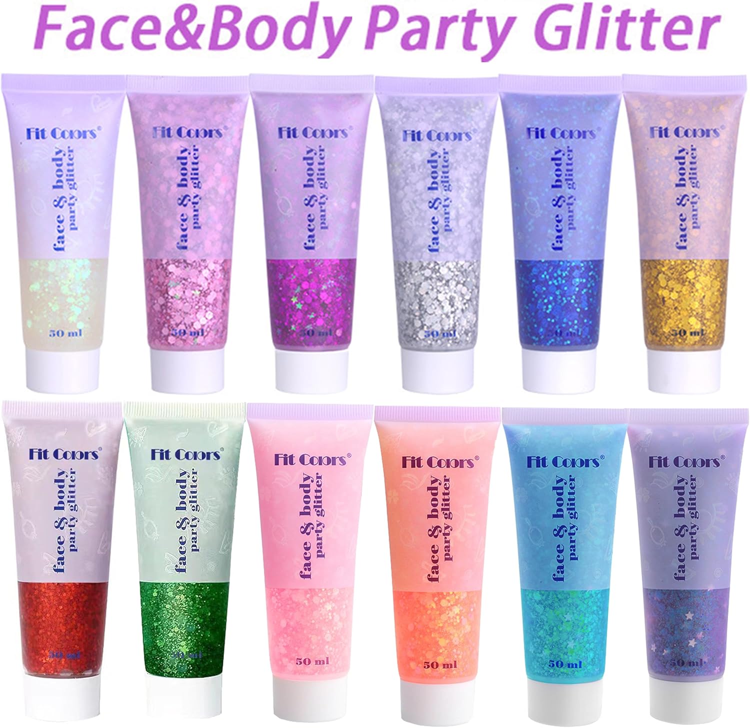 - Multiple Colors Holographic Glitter Gel --- Our Sparkly body glitter are rich in many colors.This face glitter gel is made of holographic glitter, contains 50ml glitter gel, which is light and durable. Large number of holographic sequins, the color and shine of the laser sequins vary with the perspective, like a rainbow