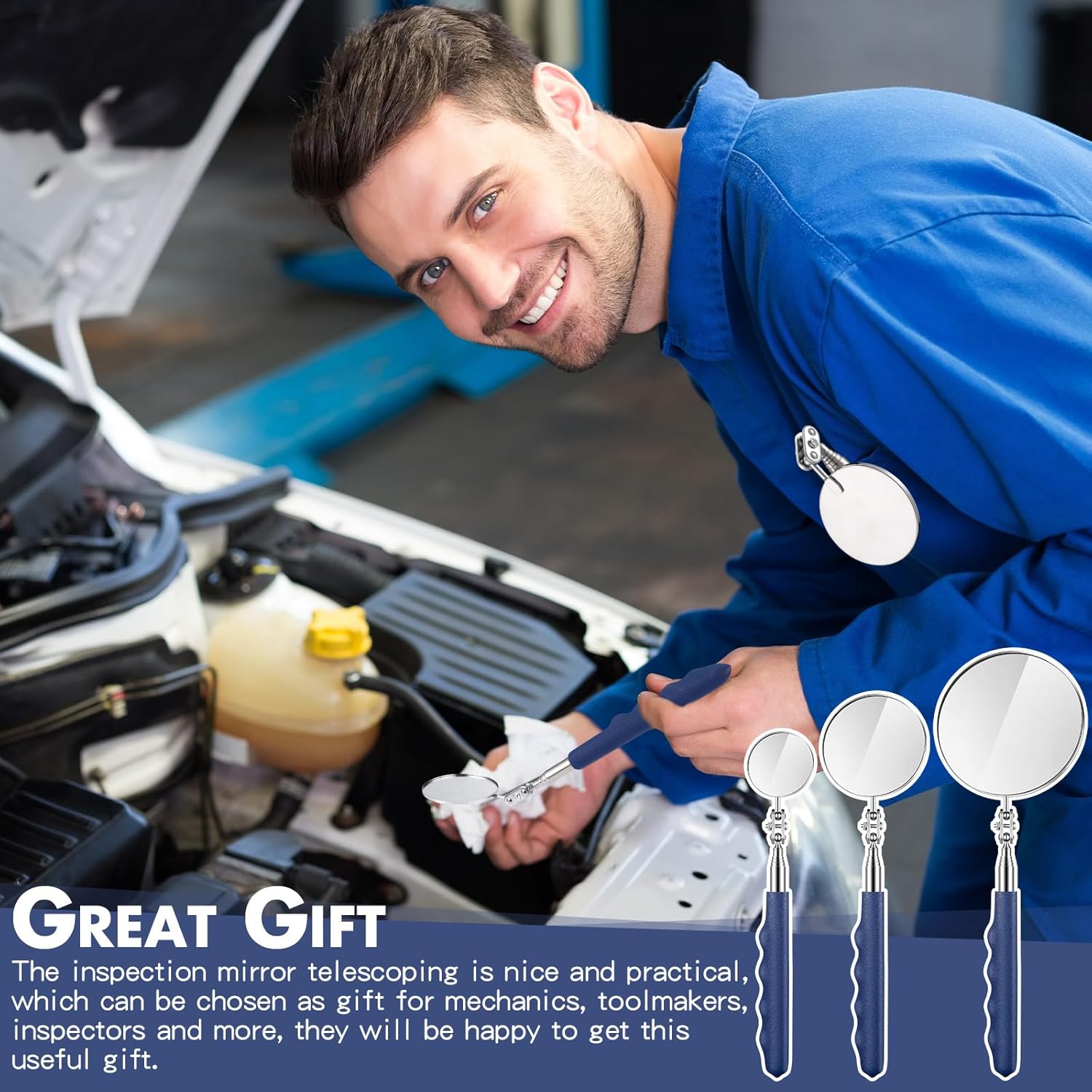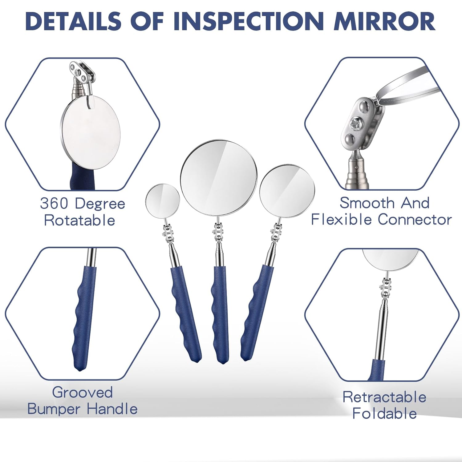 3 Pieces Telescoping Inspection Mirror Stainless Steel Extendable Mechanic Mirror with Long Handle Tool for Technicians Mechanics Contractors (Blue)