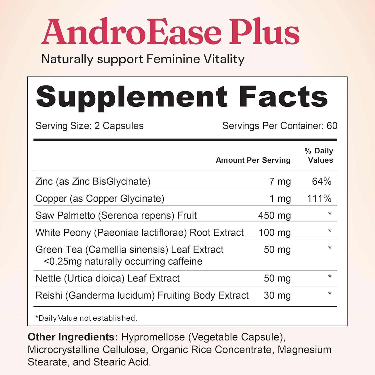 Nourished AndroEase Plus for Women’s Health - Zinc, Reishi, Green Tea and Saw Palmetto for Women - for Energy, Vitality, Facial Hair and Daily Wellness - 360 Capsules, Made in USA