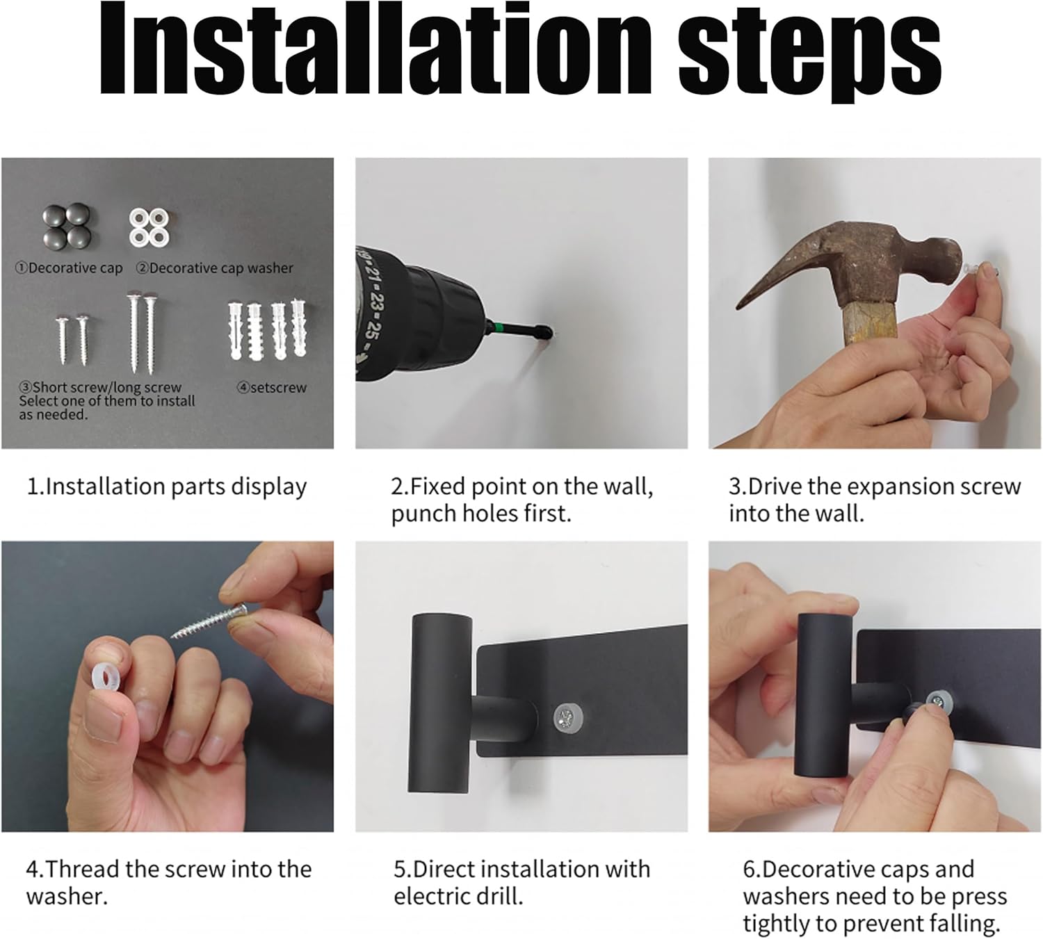 - Easy to Install: Wall mounted hangers are easy to install on walls or wooden doors; The installation hardware includes screws, plastic expansion anchors, and washers