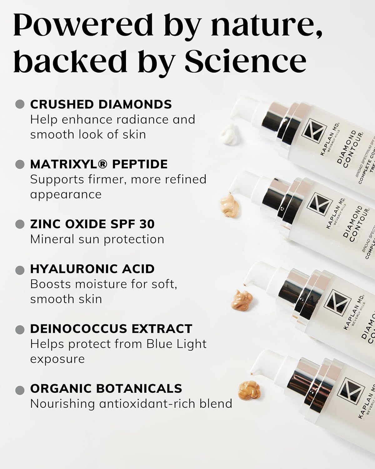 Kaplan MD Diamond Contour Broad Spectrum SPF 30 - Complete Complexion Treatment, Hydrating Sheer Coverage, UVA/UVB & Blue Light Protection, Fragrance-Free, Medium Tinted Sunscreen for Face