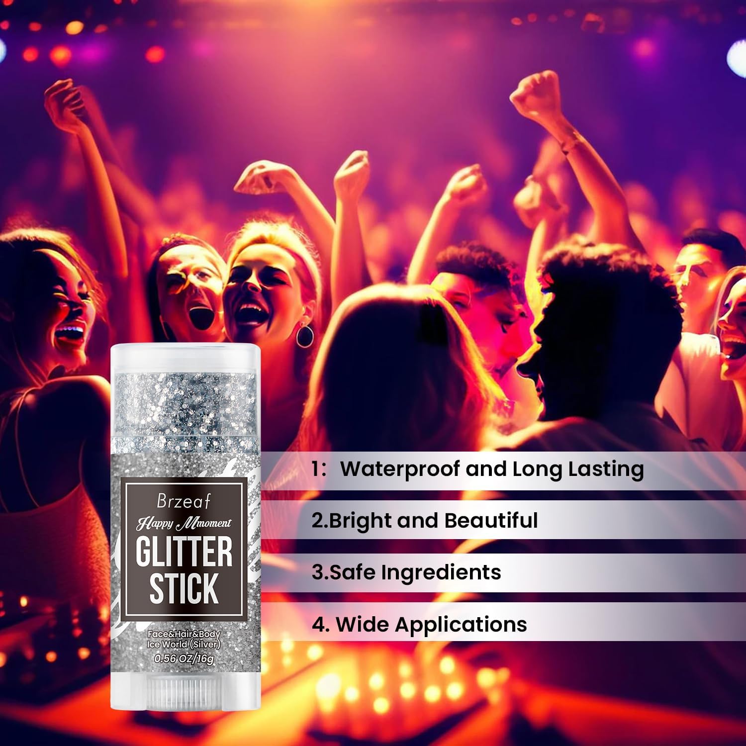 - 【Bright and Lasting Hold】Our silvery body glitter stick is makeup product designed specifically for use as accessories for events such as music festivals, concerts, parties or holiday raves. Our silvery face glitter stick will sparkle and shine, the color and shine of the sequins change with visual changes, releasing a dazzling light, allowing you to party and create your own sparkling look.