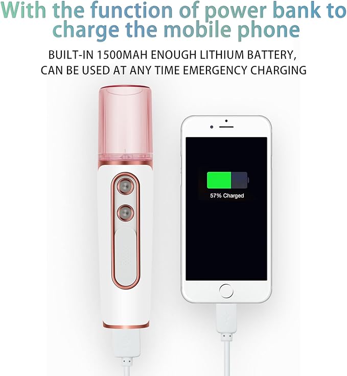 • 【 Wide Application & Multiple Charging Options】The facial care mister produces an ultra-fine nano-ionized mist. Slide the switch to dispense the mist in one second. The facial care steamers is perfect for moisturizing the face, body, hair, eyelash extensions, and daily makeup. The mini face mister can also relieve symptoms of allergic rhinitis and nasal congestion, and soothe tired eyes. You can charge the face mister anytime with powerbank, laptop, power outlet, or car charger.