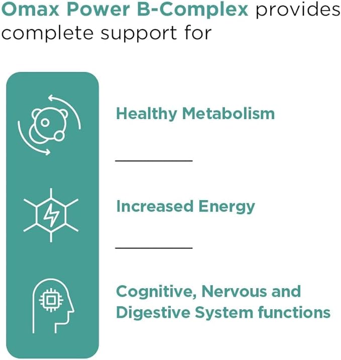 - HIGH POTENCY VITAMIN B COMPLEX - B vitamins can help with enhancing energy levels with B12 (Methylcobalamin) instead of generic B12 (cyanocobalamin), keep metabolism healthy, assist in digestive function and help keep skin, hair, nails shiny with Biotin (B7). Omax uses a natural form of Folate instead of synthetic Folic Acid.