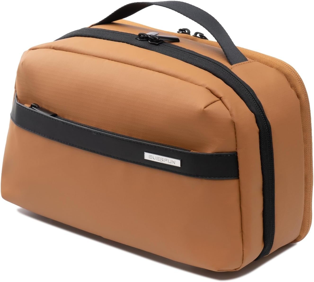 Everfun Compact Toiletry Bag for Men and Women Traveling, Wide Open Shaving Dopp Kit, Water Resistant Makeup Organizer Hygiene Bag with Wet Dry Compartment - Black, Medium