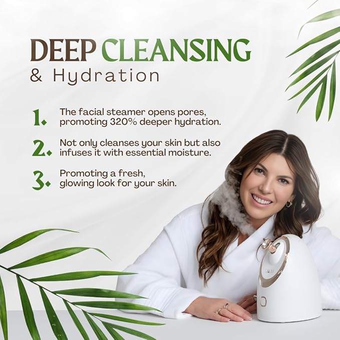 - Fast-Acting & Safe Steam Output: Generate consistent, warm mist within 10 seconds for deep pore cleansing and skin hydration. Suitable for all skin types, including sensitive skin. Features auto shut-off for safety when the water runs out.