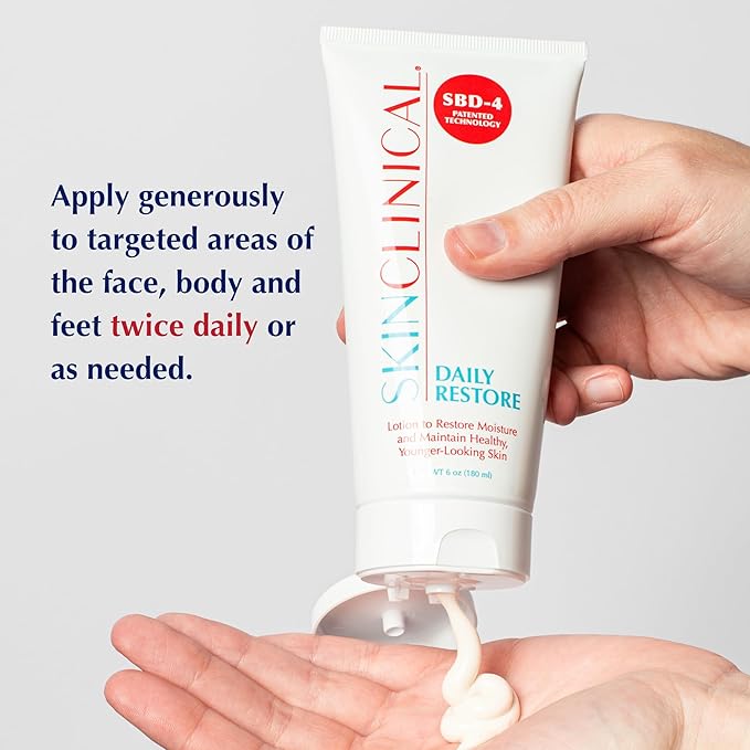 Daily Restore Hydrating and Moisturizing Body Lotion For Very Dry Skin, Psoriasis and Eczema Aftercare, Nourishes Skin with SBD-4 Patented Ingredient, Unscented Body and Face Lotion, 6 oz