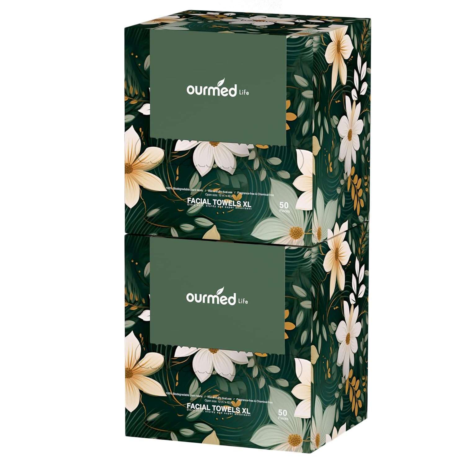 Ourmed Life Disposable Face Towels, Clean Facial Wash Cloth without Lint, Biodegradable Cleansing Dry Wipes, Skincare and Makeup Remover Towels for Sensitive Skin (Unscented, 100Count, Pack of 1)