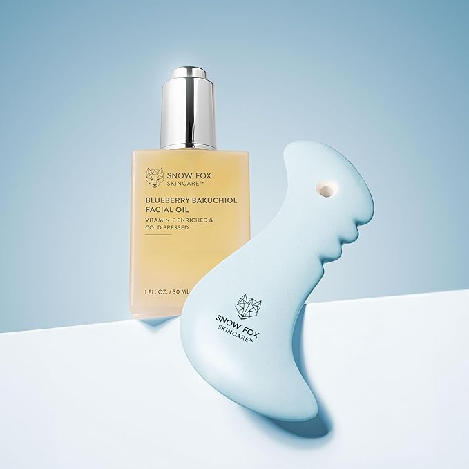 Snow Fox Porcelain Facial Gua Sha Tool | Sculpting Massager for Face Contouring, Lymphatic Drainage & Jawline Shaping | Acupressure Therapy Device | Reflexology Face Care (Arctic Blue)
