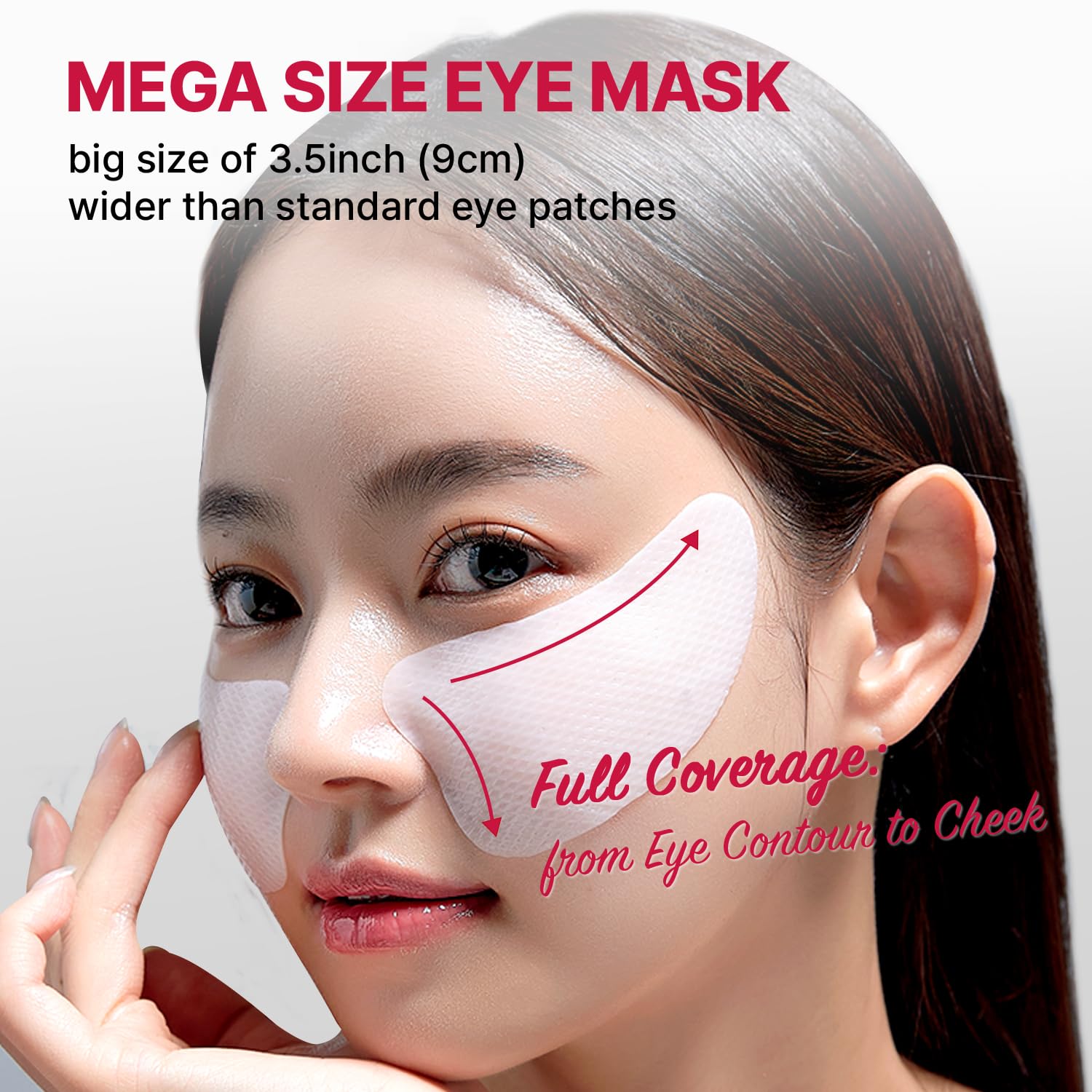 - [Mega Patch]: Our eye patches stand out from the rest. Boasting an ample 3.5-inch (9cm) dimension, they not only target eye wrinkles but also extend the care and include the cheek area. These patches adhere seamlessly and effortlessly to every facial contour, ensuring full coverage and effective results.
