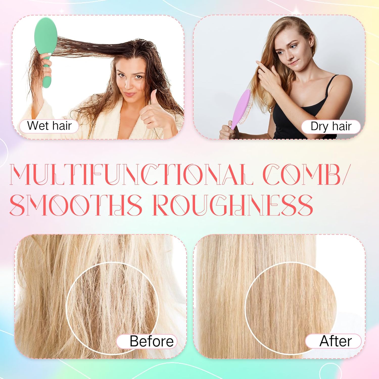 Nuenen 6 Pcs Wet Detangler Hair Brush Travel Dry Hair Brushes Detangling Hairbrush with Soft Bristles for Women Men Girls Boys(Macaron Colors)
