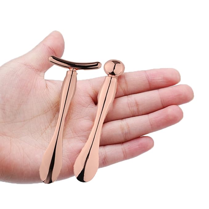 2 Pcs Metal Eye Cream Applicator Wand Stick, Eye Cream Roller Stick T-Shaped Massage Wand Makeup Spoon Set,Eye Facial Massager,Skin Care Tool for Eye Reducing Puffiness Wrinkle (Rose Gold)