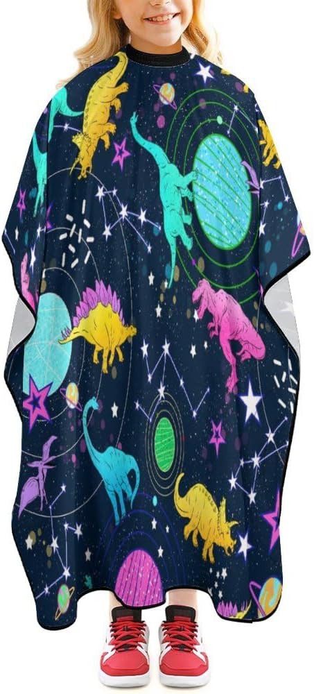 - KIDS BARBER CAPE DESIGN: Dinosaur Barber Cape Has A Certain Waterproof Ability And Will Not Get The Child'S Clothes Wet During Hair Washing Or Hair Dyeing. The Fabric Is Smooth, Doesn'T Stick To Your Hair, And Cleans Up Very Easily. Just Shake The Hairdresser'S Apron Gently To Remove Broken Hair.