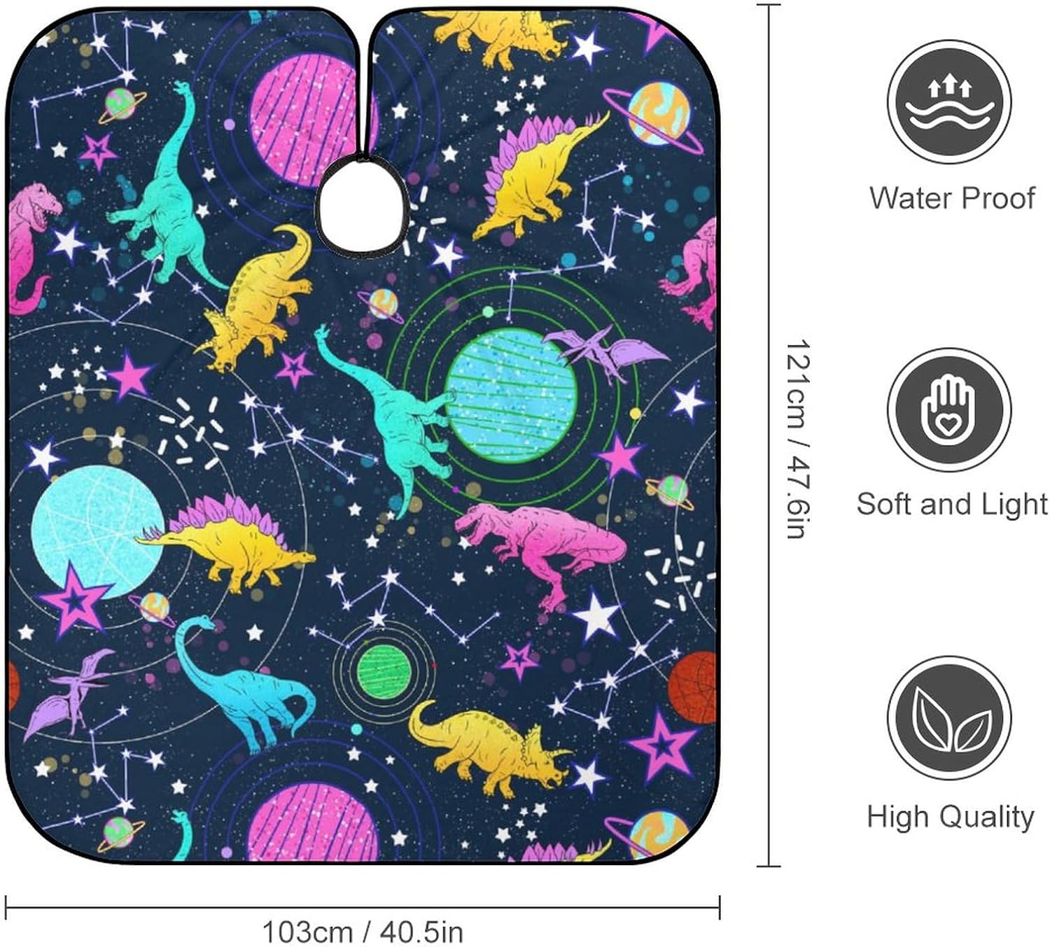 - COMFORTABLE FABRIC: This Dinosaur Barber Cape For Kids Is Made Of High-Quality Polyester, The Fabric Is Comfortable, Breathable, Lightweight And Smooth. 39*47 Inches Can Completely Cover The Child'S Front And Back.