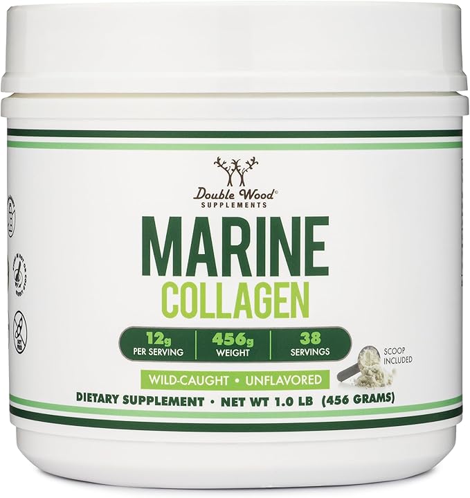 - 1.0 LB (16 OZ) OF THIRD PARTY TESTED, 99% PURE, MICRONIZED, WILD CAUGHT, UNFLAVORED FISH COLLAGEN POWDER: Double Wood includes a full pound of Marine Collagen that is unflavored, micronized, and wild caught