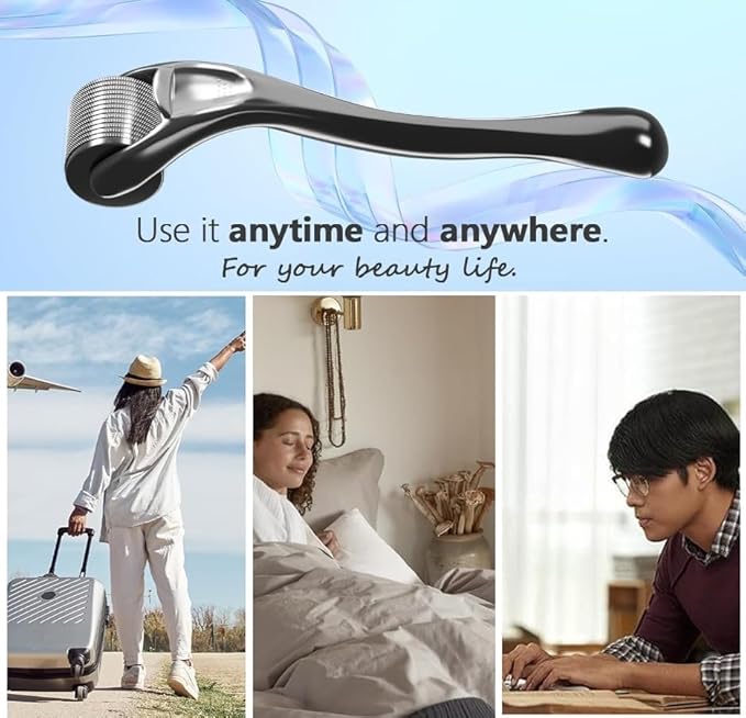 Derma Roller 0.25mm Beard Roller Ficial Roller Microneedle Micro Needle Roller 540 Titanium for Men and Women Home Use Microneedling Roller Dermaroller Skin Care Tool