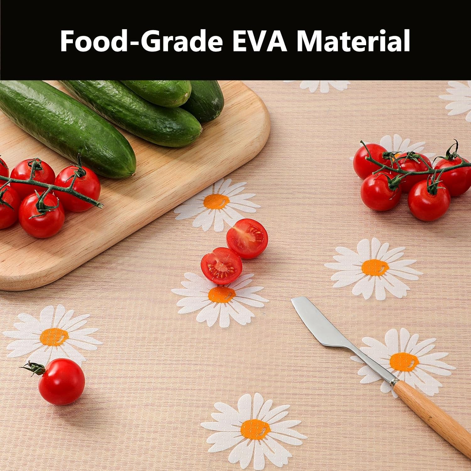 - FOOD-SAFE PROTECTION: Made of BPA-free EVA material—Odor-free, safe for daily use. Kitchen shelf liners are durable enough for pantry shelves, refrigerators, drawer, cabinet. Safe for direct contact with fruits, vegetables, and tableware—The perfect choice for your kitchen.