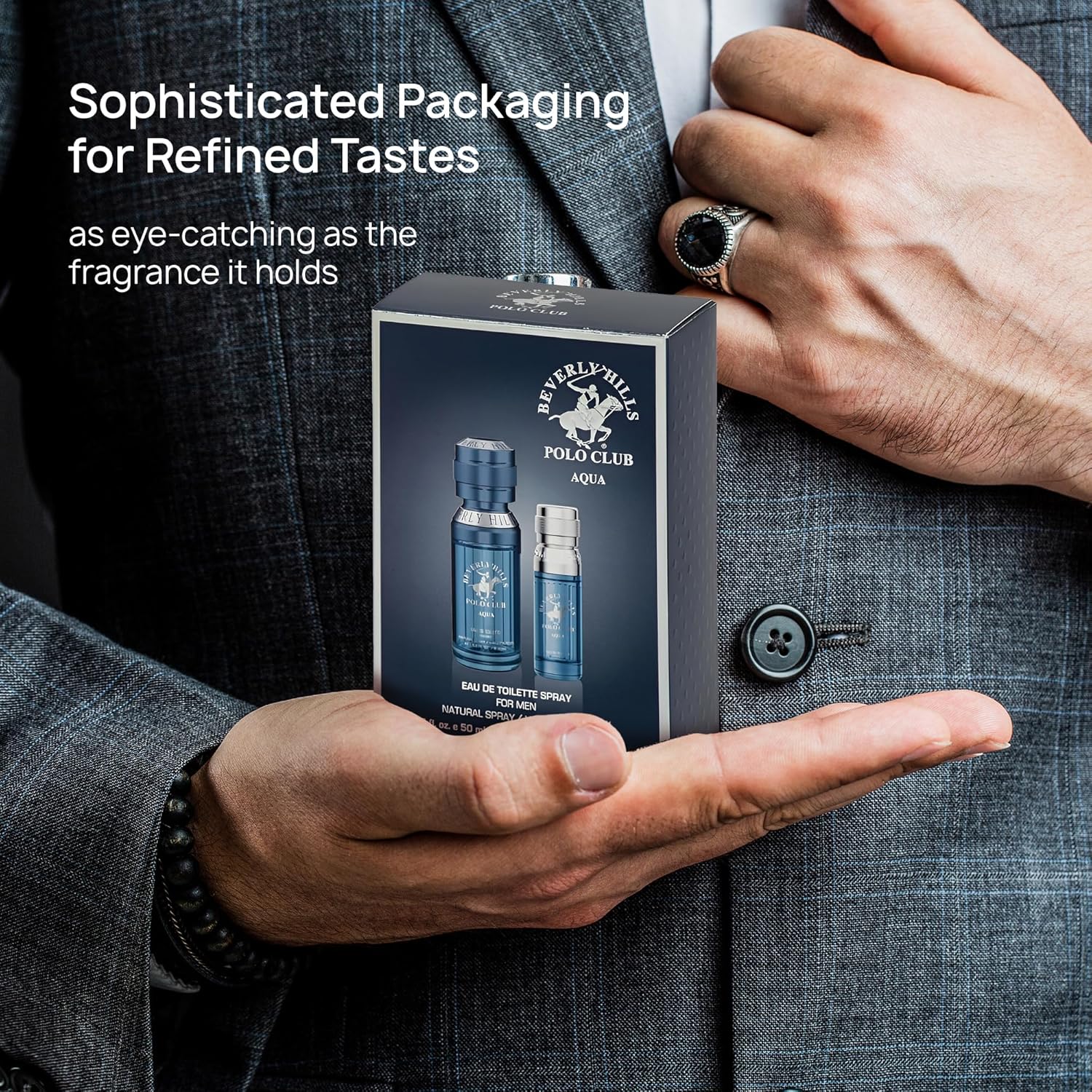 Beverly Hills Polo Club BHPC Men's Eau De Toilette Aqua Bonus Pack - Long-Lasting Fragrance for Him, 2.2 Fl Oz Total (1.7oz + Travel 0.5oz)