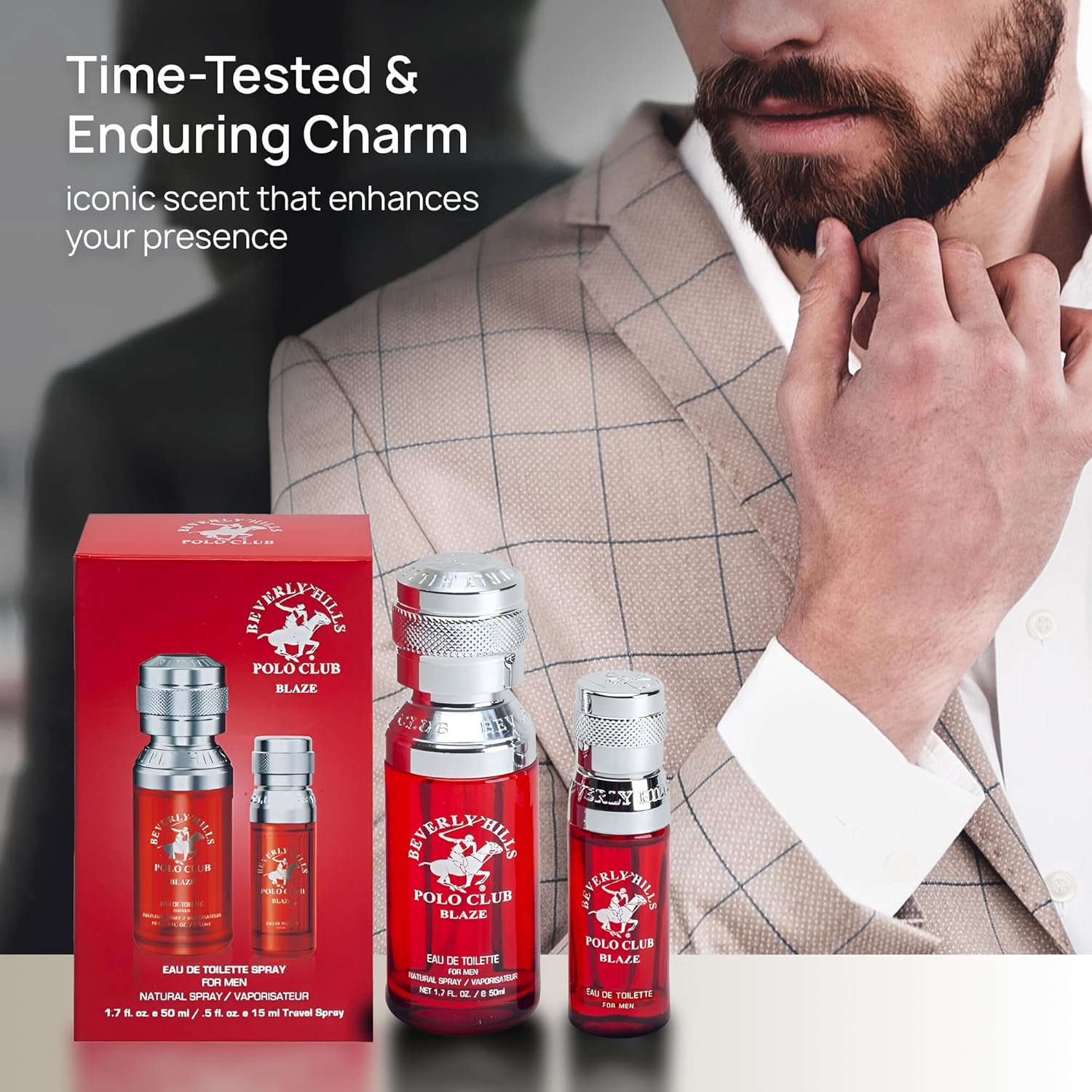 Beverly Hills Polo Club BHPC Men's Eau De Toilette Bonus Pack, featuring 1.7 oz EDT + Bonus 0.5 oz EDT (Blaze)