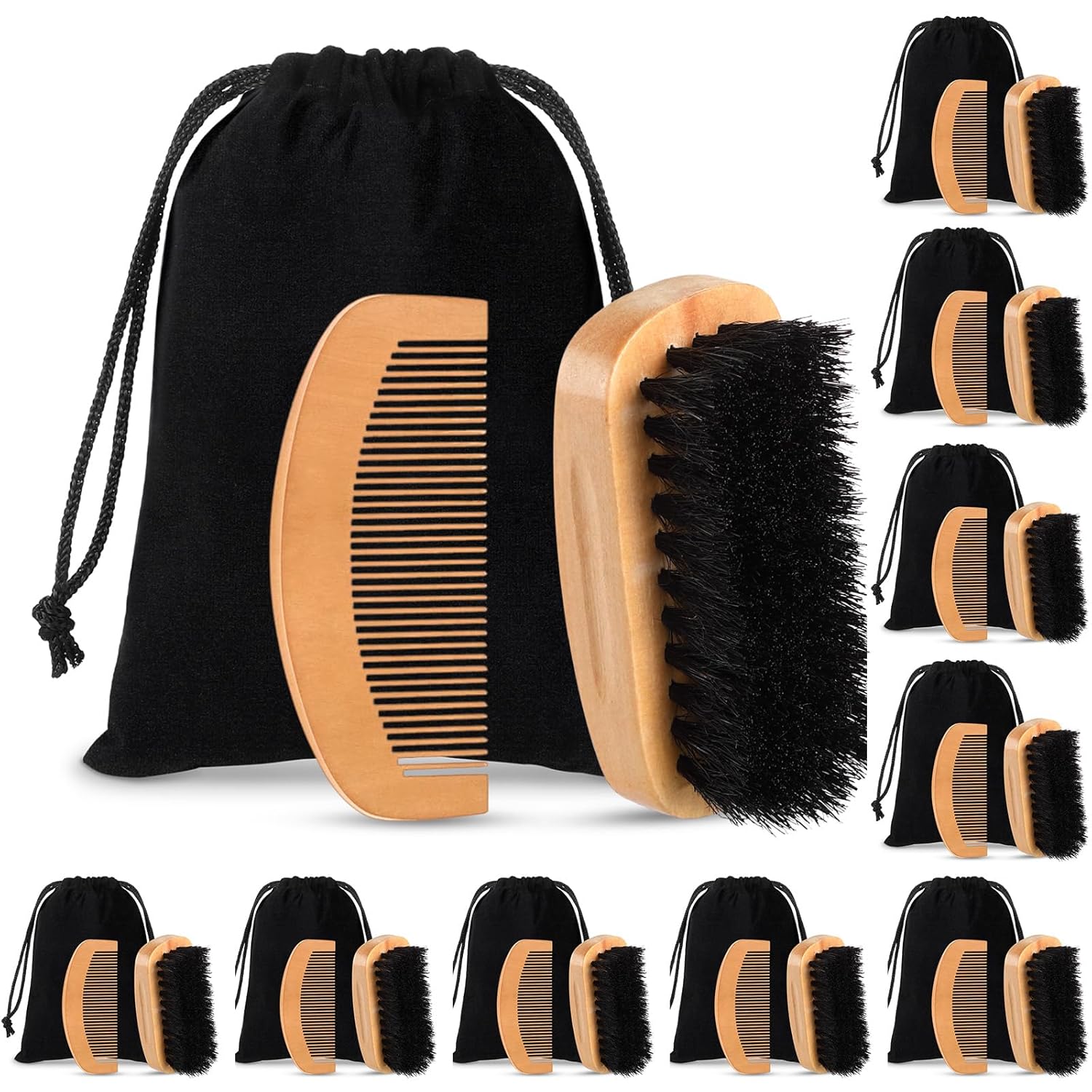 - Large Quantity: you will receive 10 sets of beard grooming kit, each set contains a rectangle beard bristles brush, wood beard comb and a black drawstring bag, the quantity is large so that you can easily replace during the use, you can also share also others to use