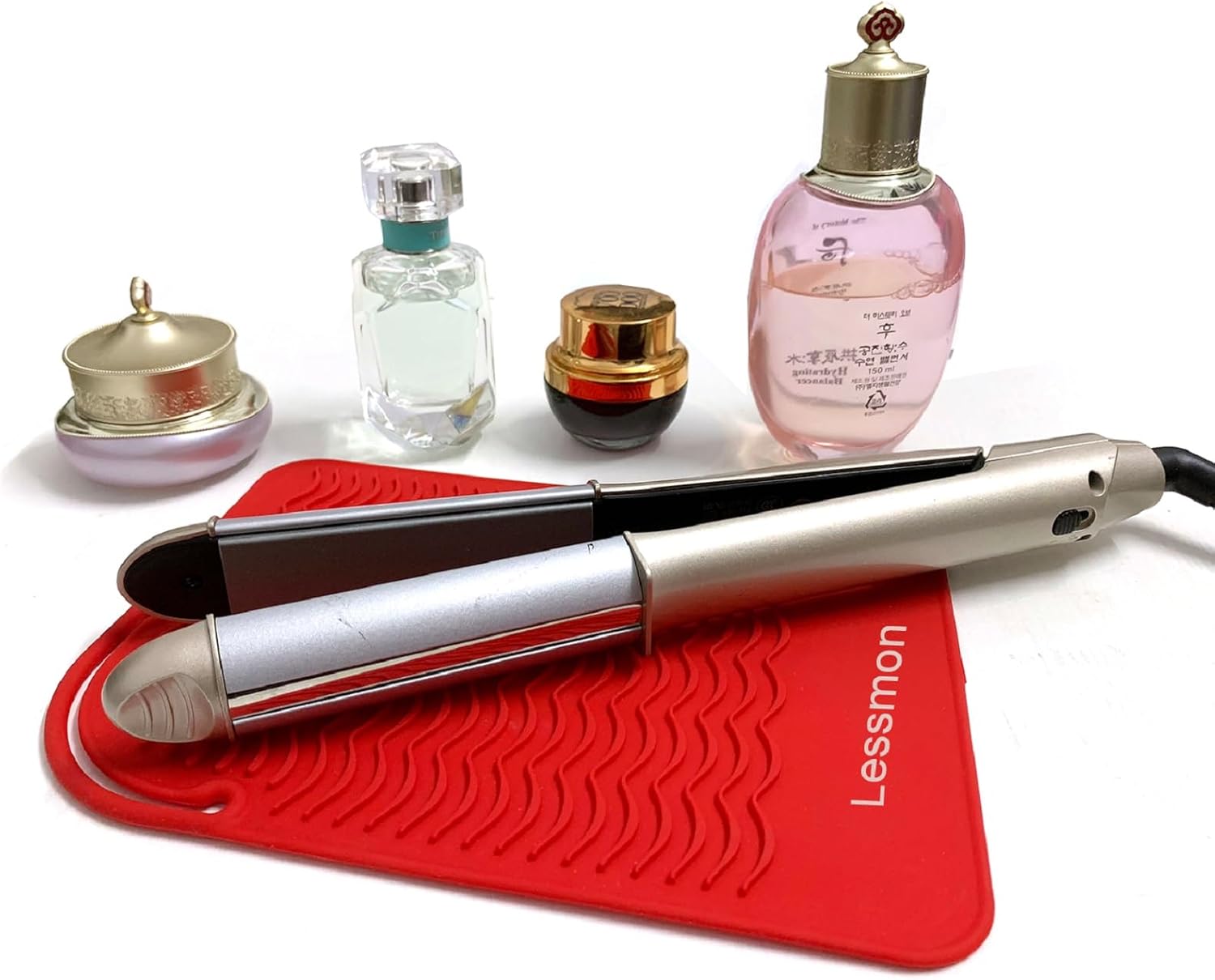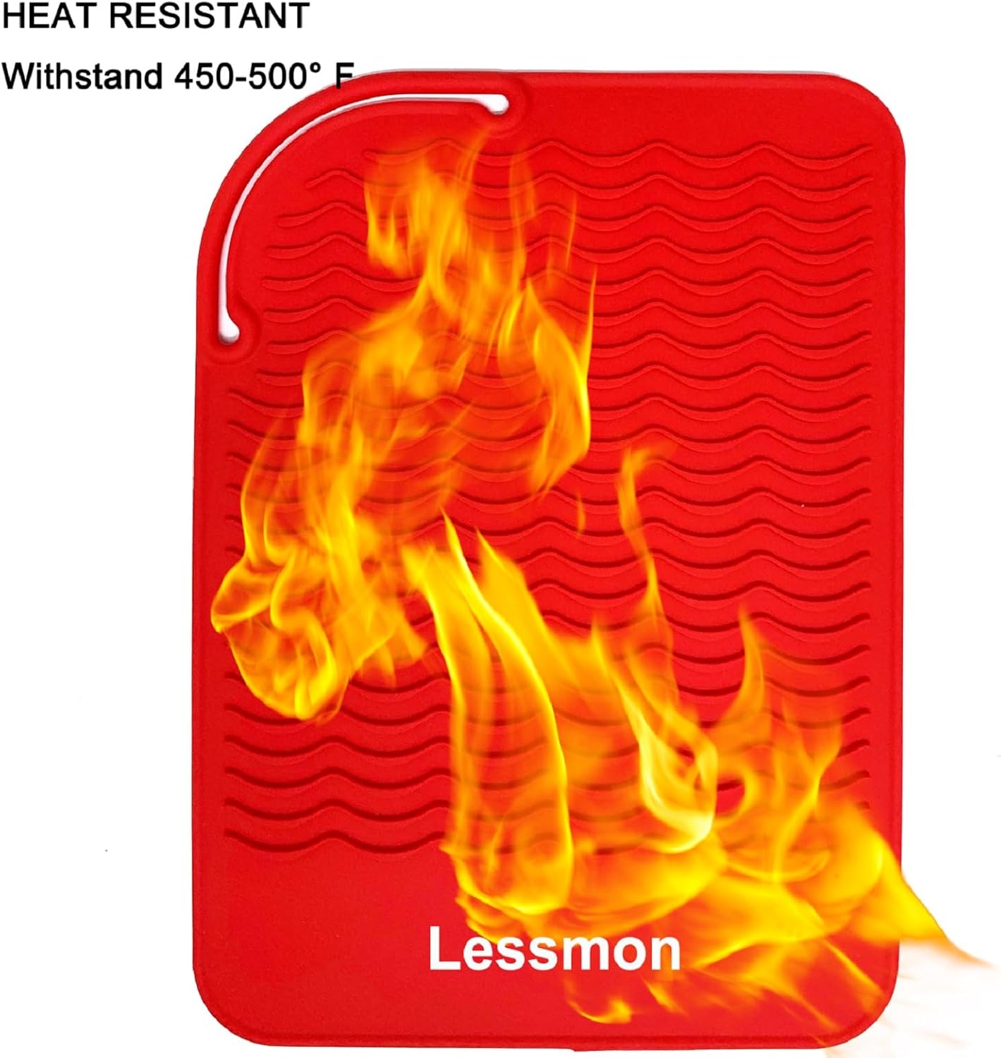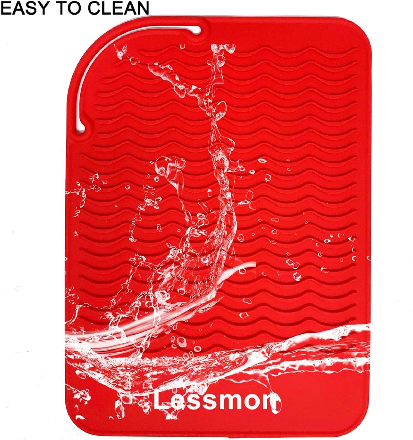 - Bigger Wrap & Holder - New, Larger 11 in x 7.5 in Lessmon Silicone Mat! Our mat can wrap the curling iron’s hot part, or you can just put the heated tools on the mat to protect your counter from heating damage. The redesigned size mat can stand 2 or more hot hair tools at a time, to make your hair styling more convenient and happier.