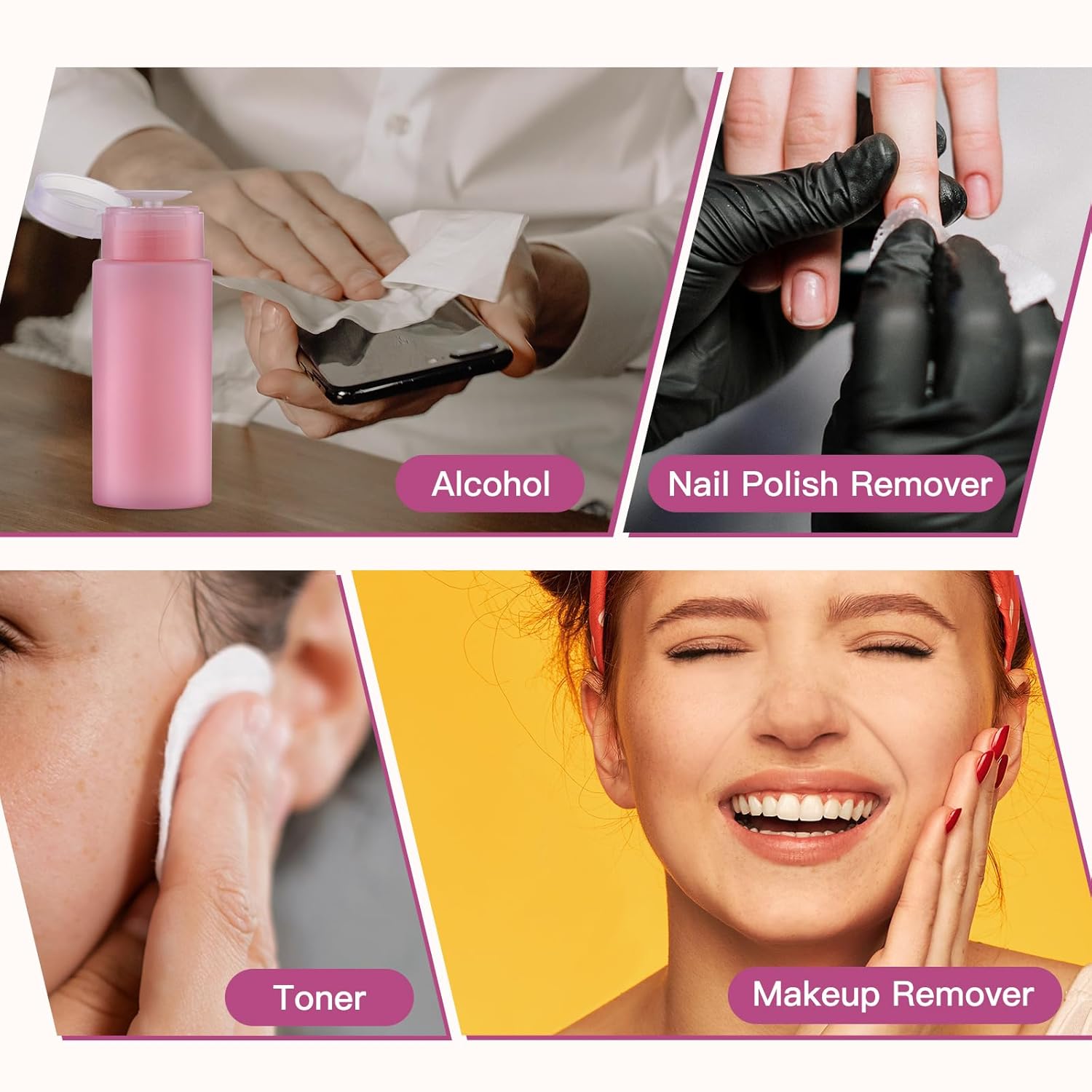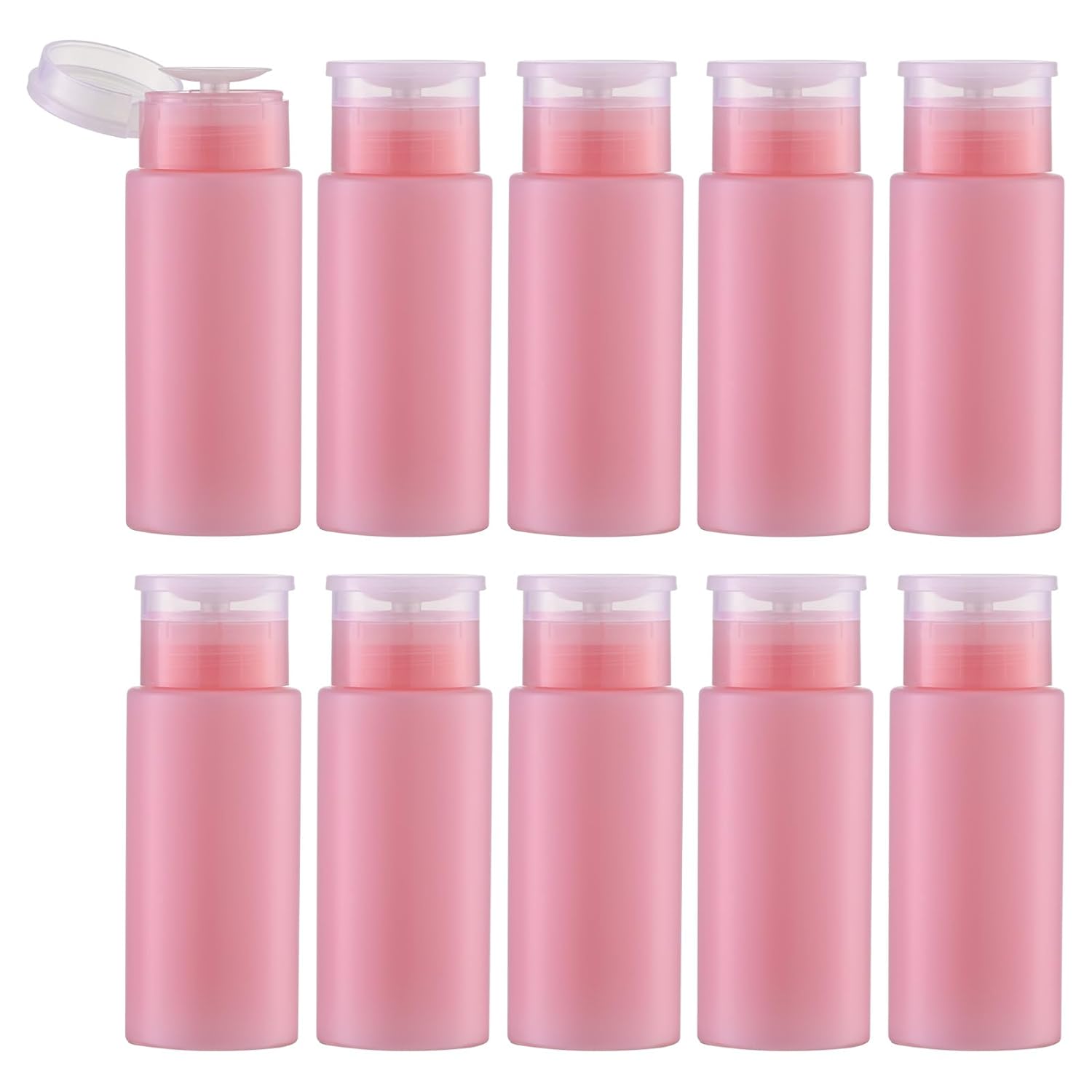 5.3oz Nail Polish Remover Bottle, 10PCS Push Down Pump Alcohol Dispenser, Empty Makeup Acetone Containers (Pink)