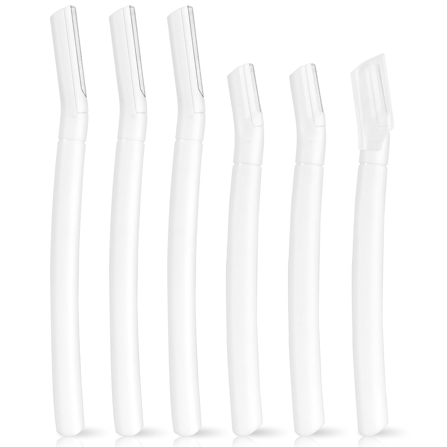 6 PCS Eyebrow Razor Set, White Face Razor for Women and Men, Multipurpose Dermaplaning Tool, Eyebrow Hair Trimmer, Face Shaver with Protective Cover, 3 Pcs Long Handles and 3 Pcs Short Handles