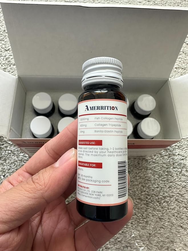 Liquid Collagen Peptide Drink - 12000mg Hydrolyzed Marine Collagen Peptides with Collagen Tripeptide, Supports Healthy Hair Skin Nails Joints and Bones (1 Box, 10 Bottles)