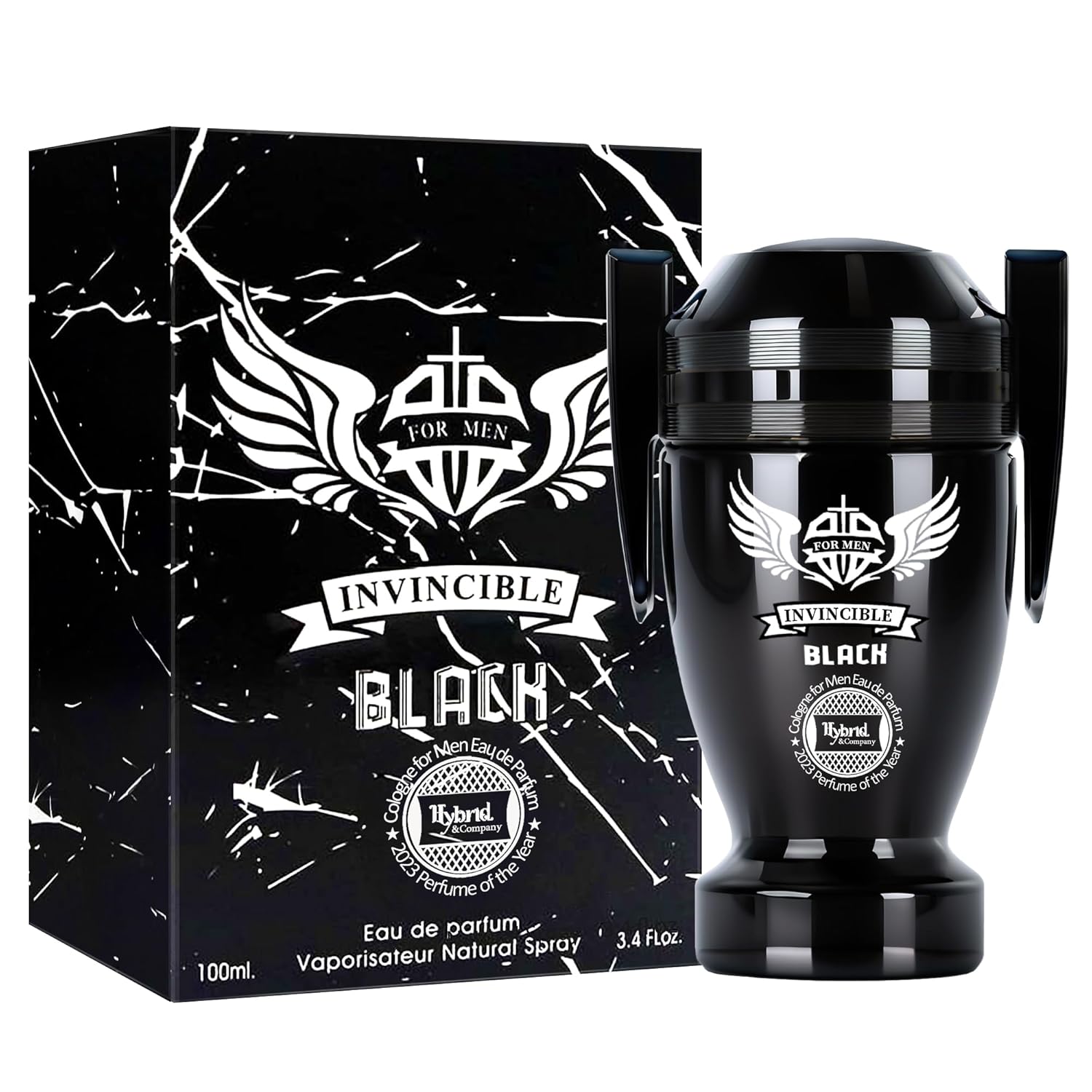 Hybrid & Company Invincible Black For Men Pour Homme Eau De Toilette Natural Spray 3.4FL.OZ