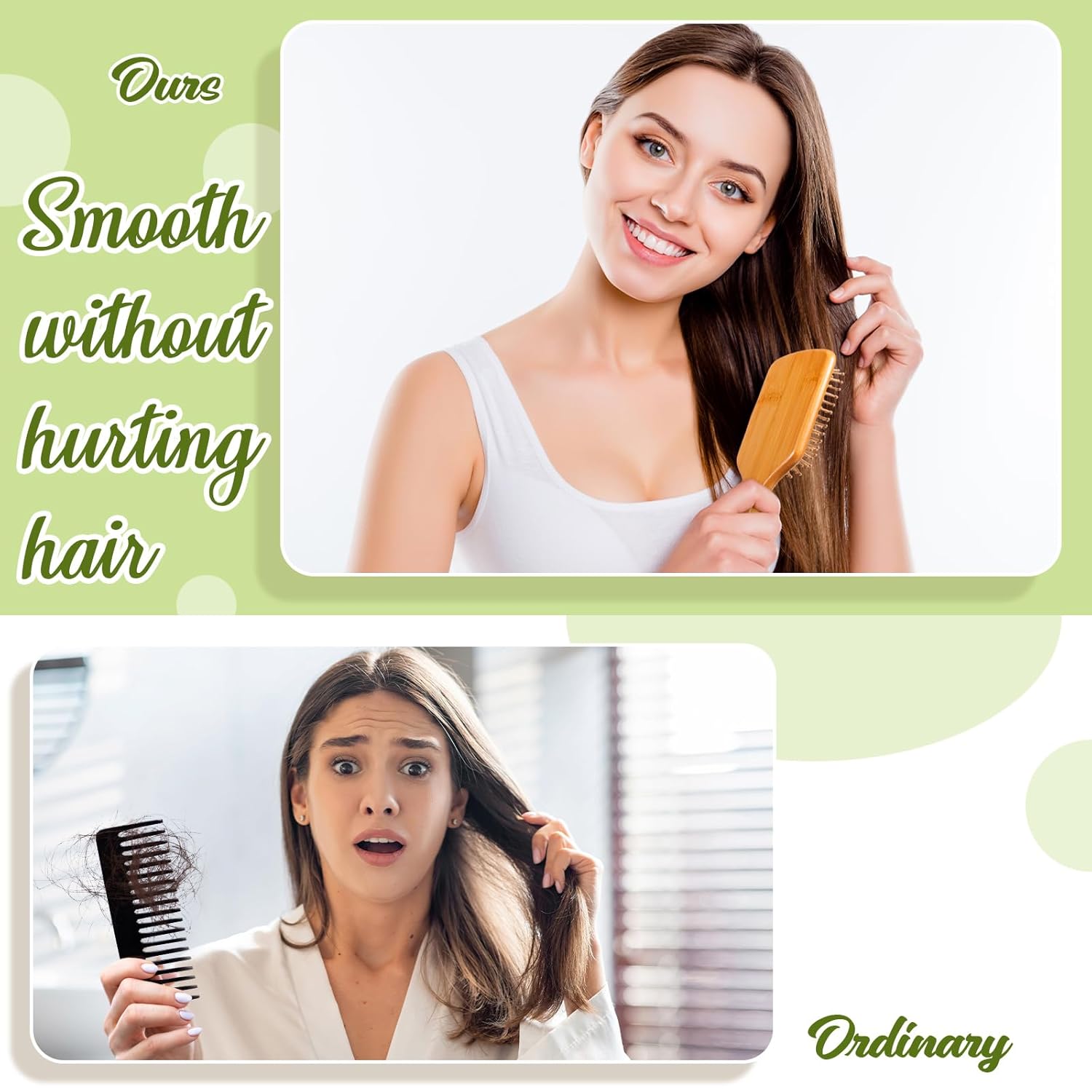 - Release Your Stress: these hair brushes for women are made of bamboo with bamboo bristles and rubber cushion; The design of air hole make rubber cushion more elastic, ball tipped bamboo bristles can help massage scalp better and improve blood circulation and release your stress