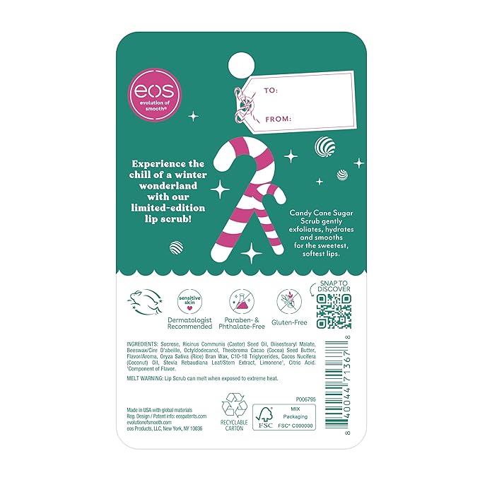 eos Holiday Lip Scrub Exfoliator- Candy Cane Sugar Scrub, Limited-Edition Moisturizing Lip Treatment, Stocking Stuffers, 0.56 oz