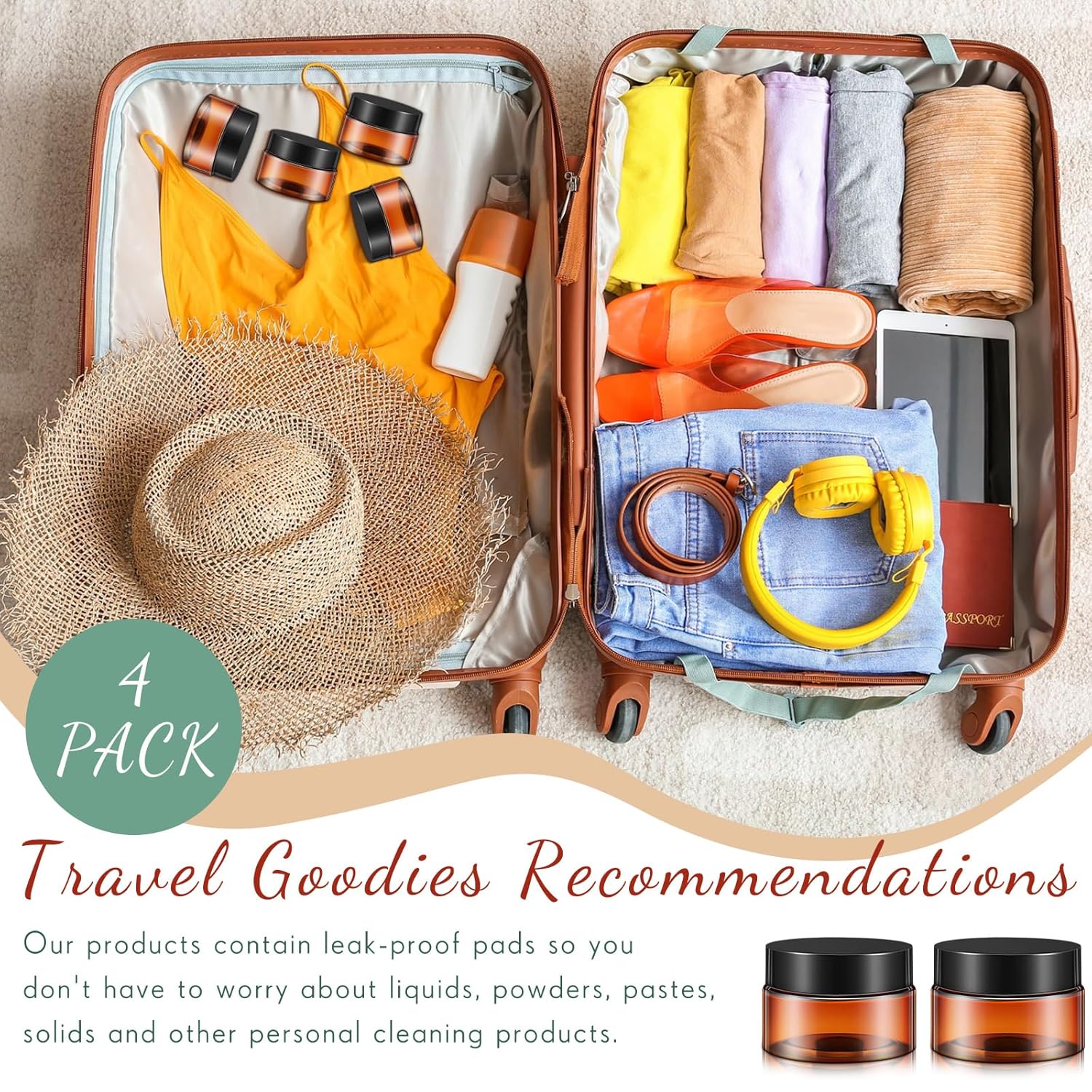 Patelai 4 Pieces Round Wide-mouth Leak Proof Plastic Container Jars with Lids for Travel Storage Makeup Beauty Products Face Creams Oils Salves Ointments DIY Making(1 Ounce,Amber)