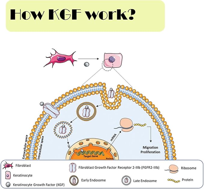 - Versatile Cosmetic Application: Use this KGF Powder as a key factor in formulating anti-acne, scar removal, and anti-aging products, shortening wound healing time.