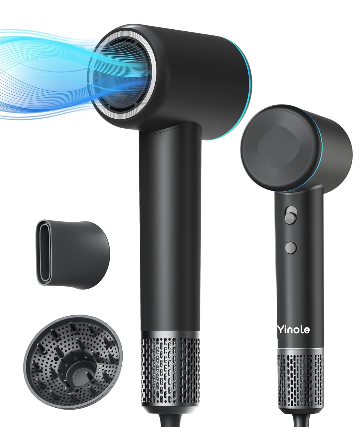 - ✨[Powerful Performance] The Yinole hair dryer features a 1500W high-speed brushless motor with up to 110,000 RPM and a wind speed of up to 23m/s, making it 3-5 times faster than traditional hair dryers. Say goodbye to hectic mornings and hello to peaceful moments, making each day smooth and spectacular.