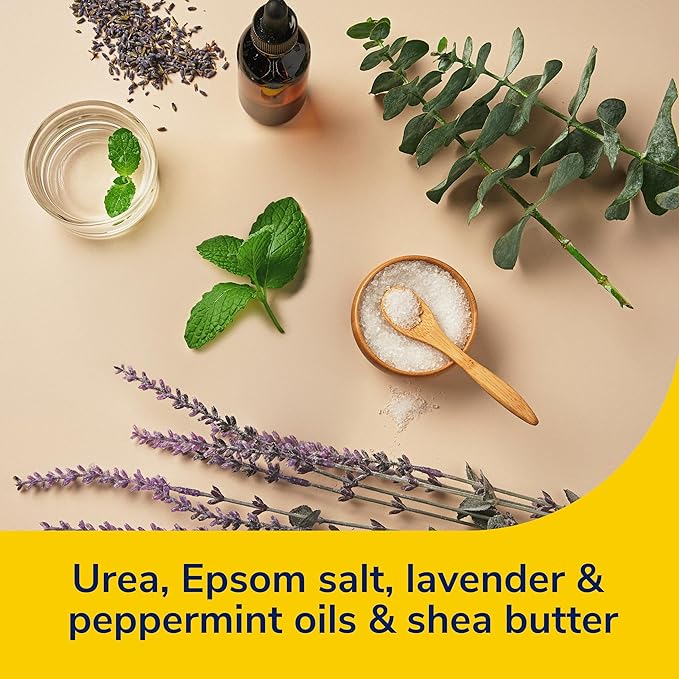 - Moisturizes: A professional-strength dry feet treatment, this foot repair balm for dry feet is enriched with the ideal amount of urea (25%) and Epsom salt to offer unique skin softening and moisturization. The proprietary Urea complex in this foot moisturizer enables this foot lotion to draw moisture deep into the skin, supercharging skin hydration for 24-hour moisturization. It also contains the moisturizing effects of shea butter and cocoa butter.