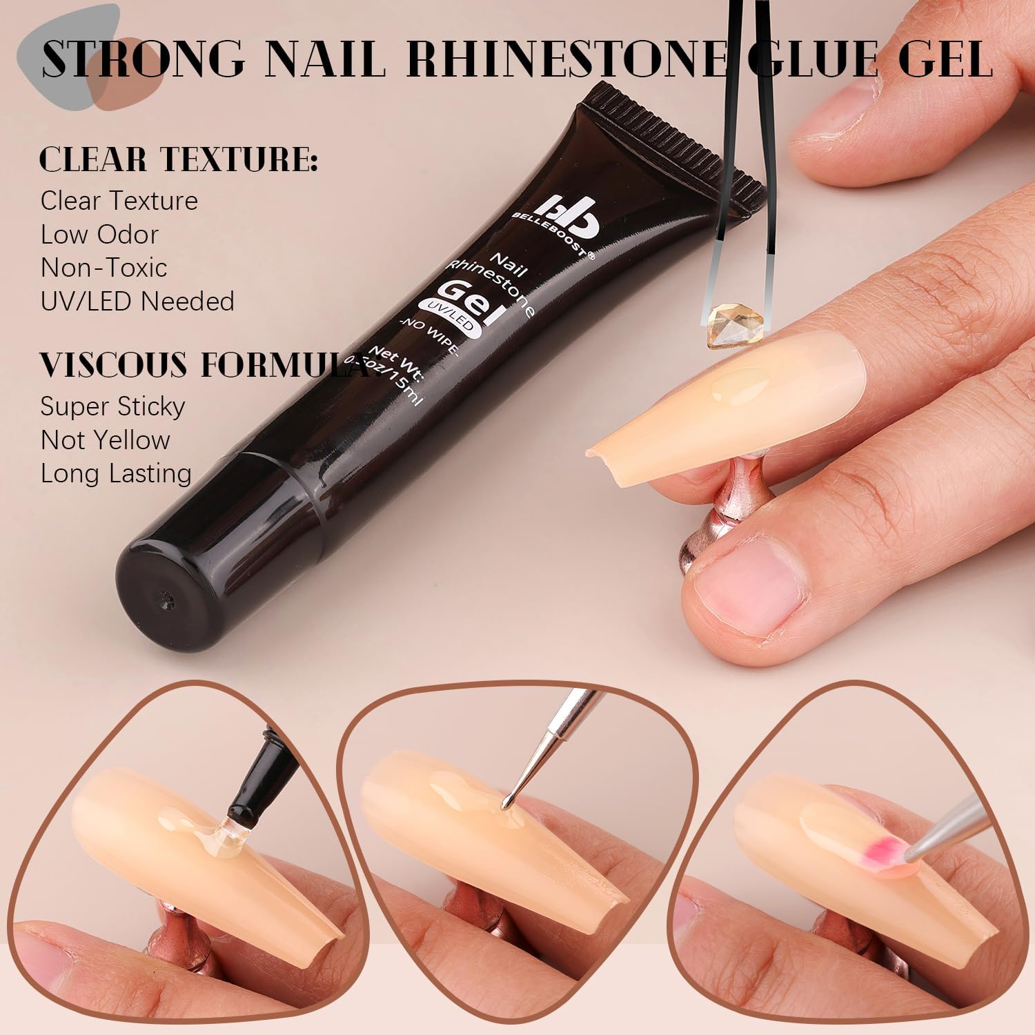 - ๐ADHESIVE GEL GLUE: The rhinestones glue gel uses a special, non-toxic and eco-friendly formula with strong tackiness, adhesion, and fluidity for easily applying decorations. It is a type of UV gel glue. After proper curing under a UV/LED lamp, the glue dries clear with superior bonding strength that can last a few weeks without falling off. With the designed tip, you can easily and conveniently apply the glue to the nail bed or the surface of false nails.