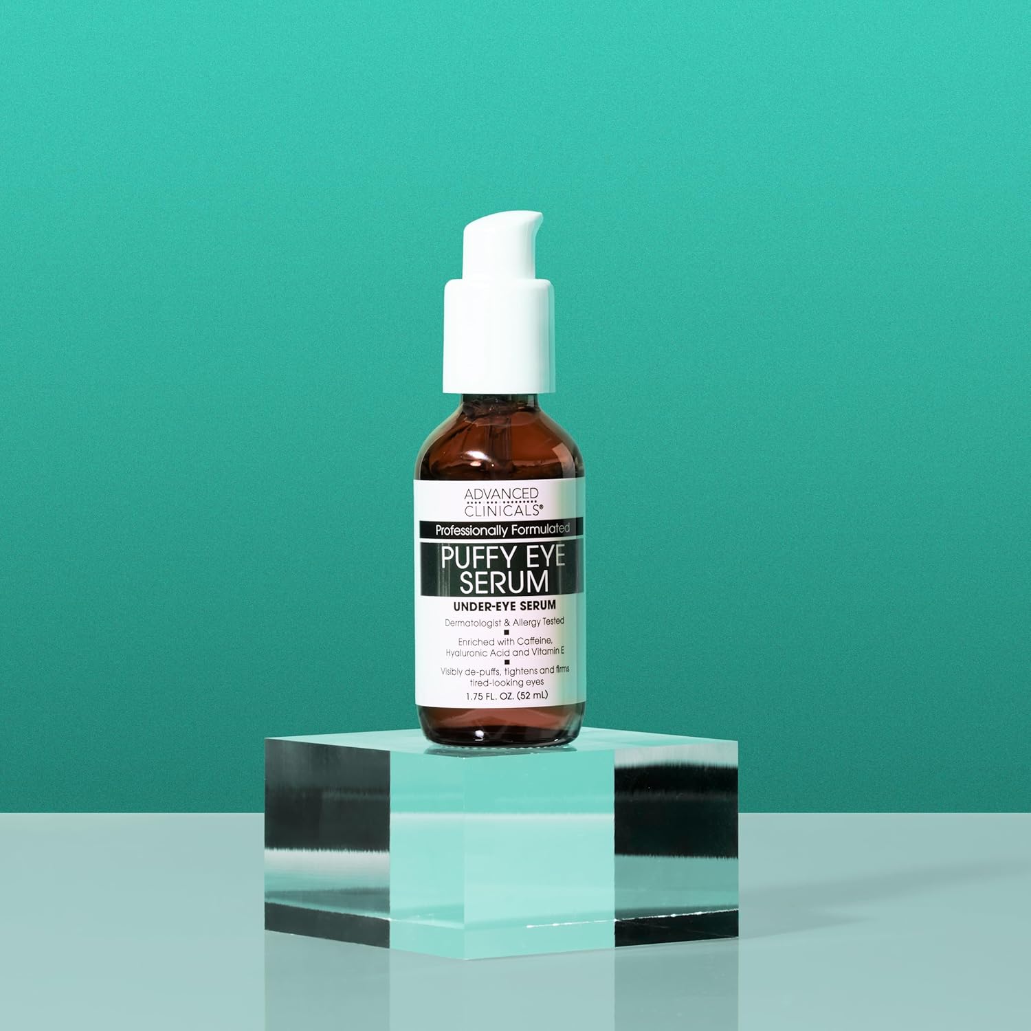 Advanced Clinicals Puffy Eye Under Eye Serum | Visible Anti Aging Brightening Vitamin C + Caffeine Serum Helps Improve Look Of Puffiness, Fine Lines, Dark Circles, & Uneven Skin Tone, 2-Pack