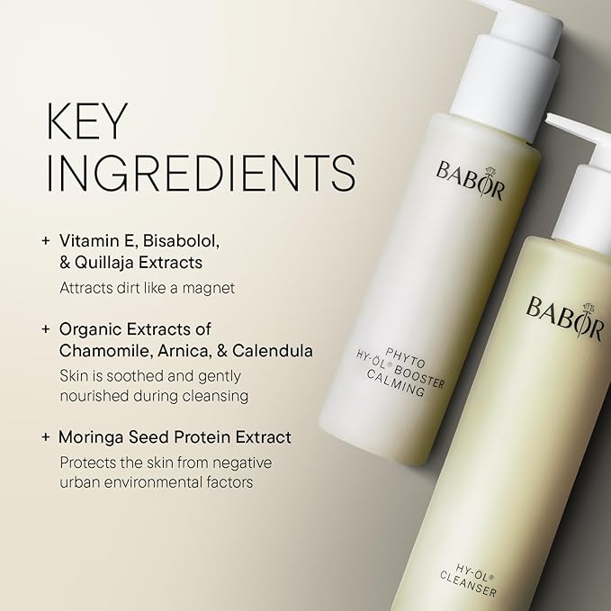 BABOR HY-OL Cleanser & Phyto HY-OL Booster Calming Set, Double Cleansing, Oil Cleanser and Makeup Remover Oil, Soothe & Support Skin Barrier, Sensitive Skin