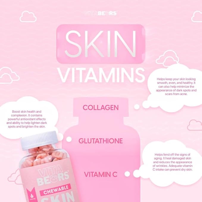 Vitabears Skin Vitamins Type 1 & 3 Collagen Peptides - 60 Gummies